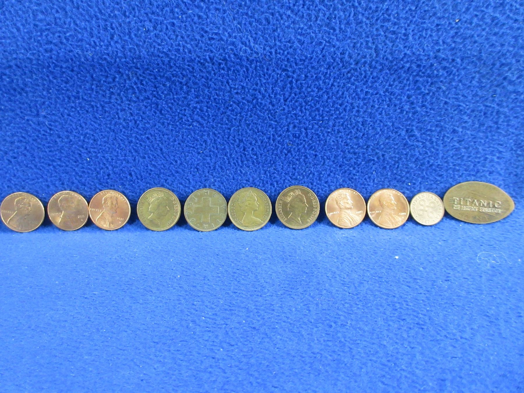 11 Assorted Pennies - USA, UK, Swiss, Etc.