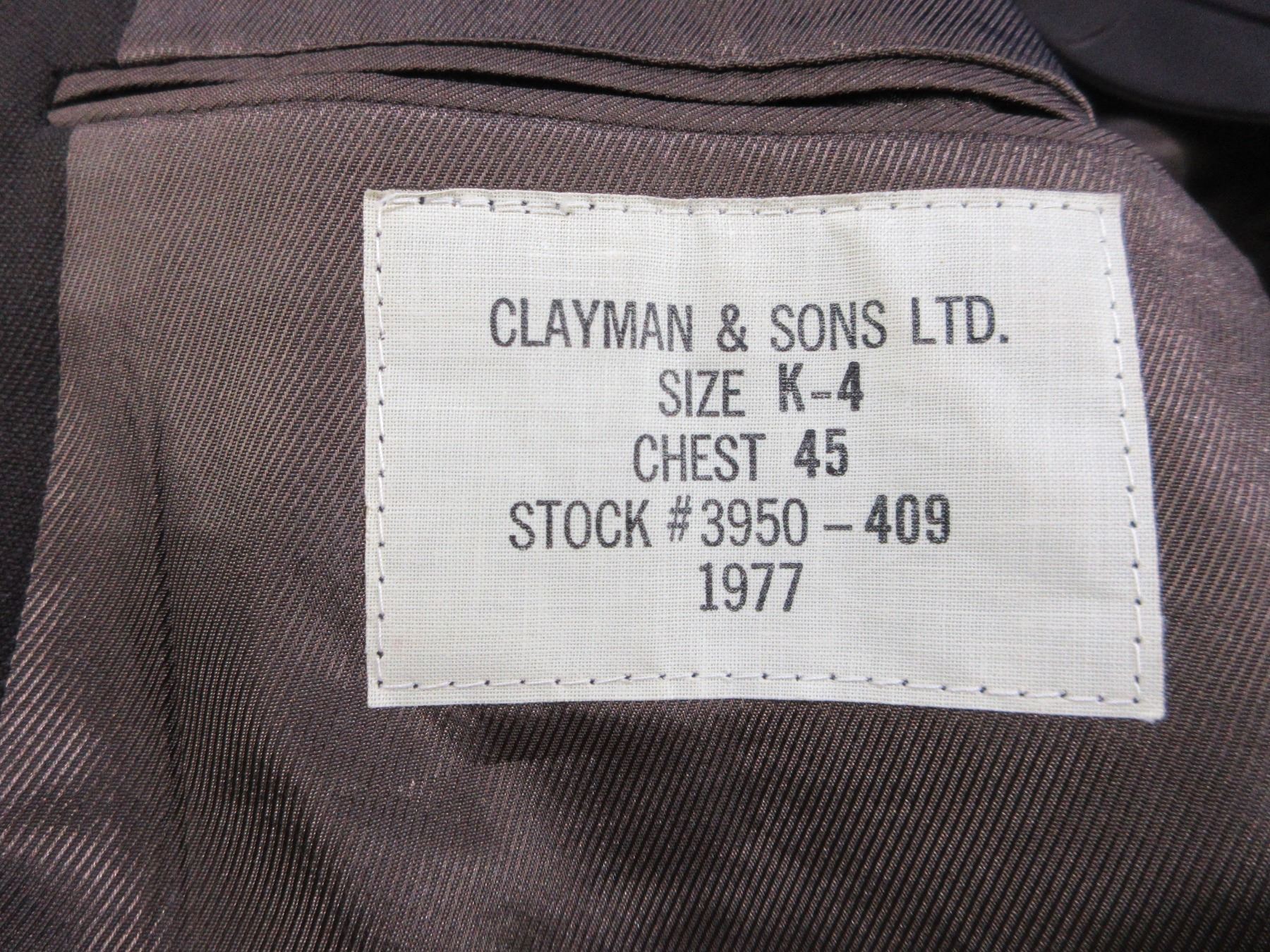 1970's Clayman & Sons Ltd. Military Brown Serge Coat - Obsolete - Size K-4, Chest 45