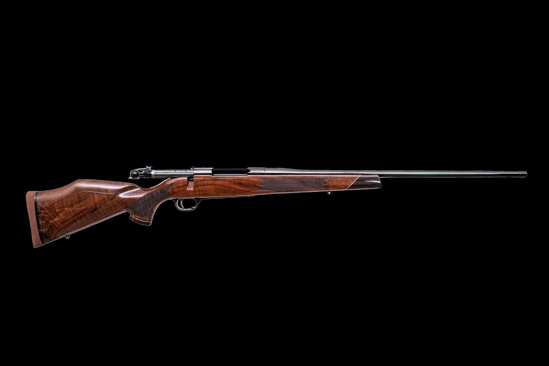 The Deluxe pays homage to those days of traditional craftsmanship for hunters who still marvel at classic styling. Complete with Regal Diamond-Point Checkering, a Rosewood Forend and grip cap, Maplewood spacers and a Pachmayr Decelerator recoil pad.