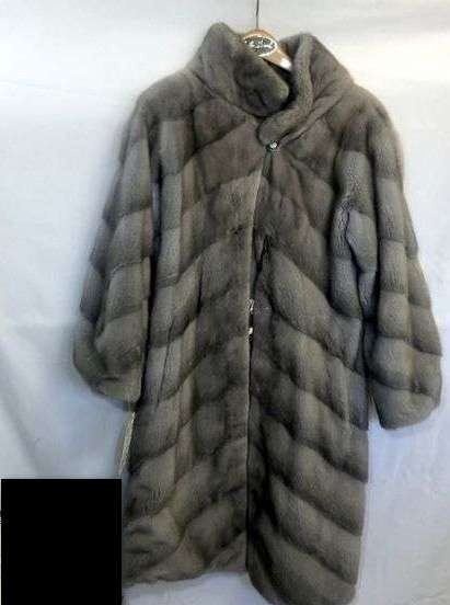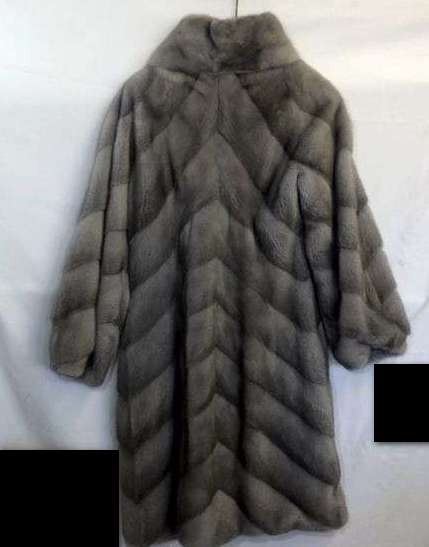 The Color is Sapphire (natural grey), Classy long mink coat, diagonal, Design.