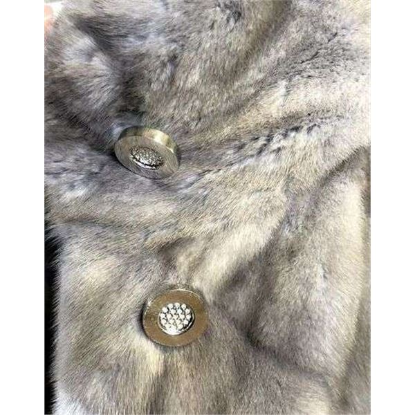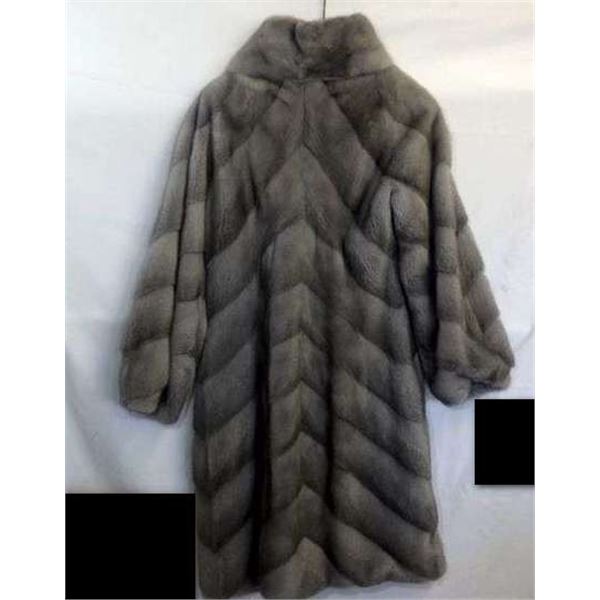 The Color is Sapphire (natural grey), Classy long mink coat, diagonal, Design.