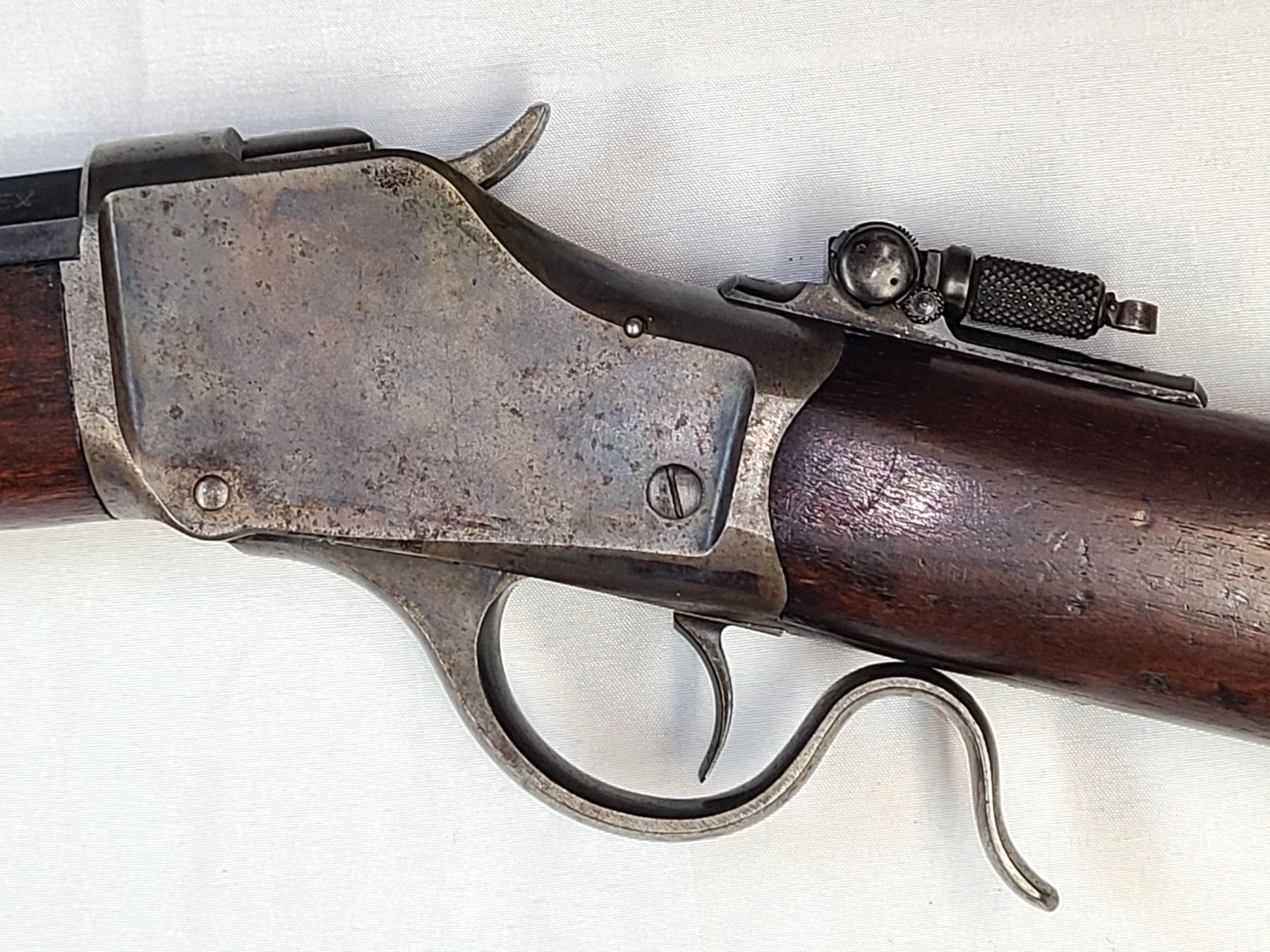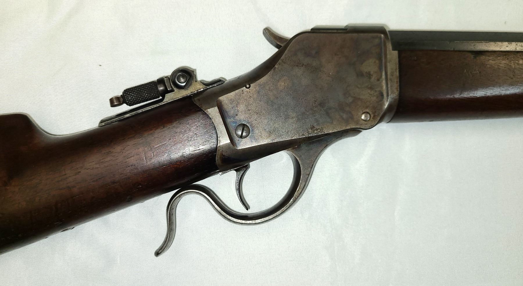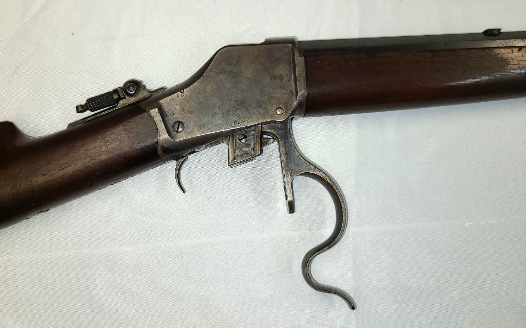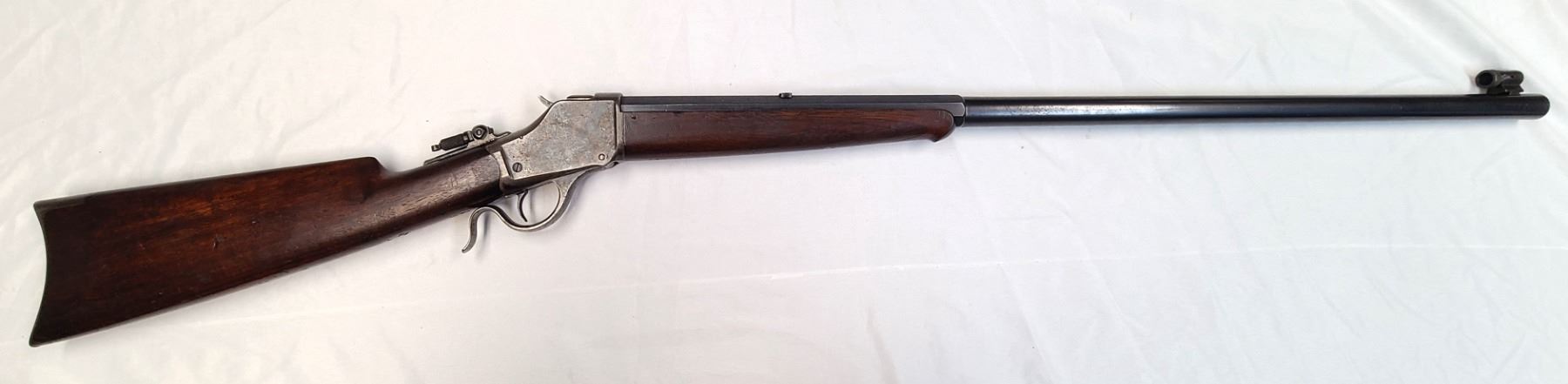 The Winchester Model 1885 is a single-shot rifle with a falling-block action. It was