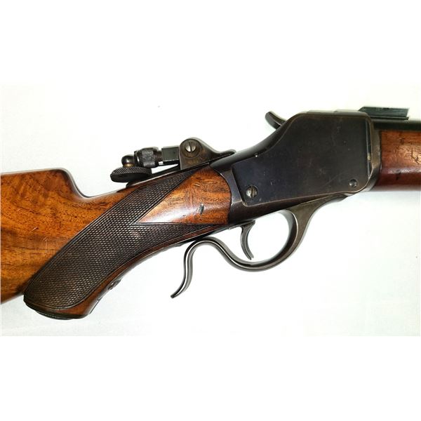 The Winchester Model 1885 is a single-shot rifle with a falling-block action. It was