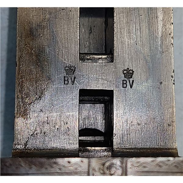 A fish tailed safety and trigger tang. Drop points, English grip, Double triggers,