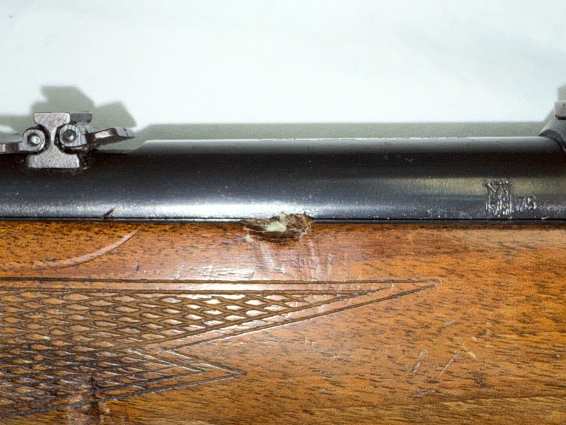 Stock does have some dents and one chip on left side below receiver (see picture)