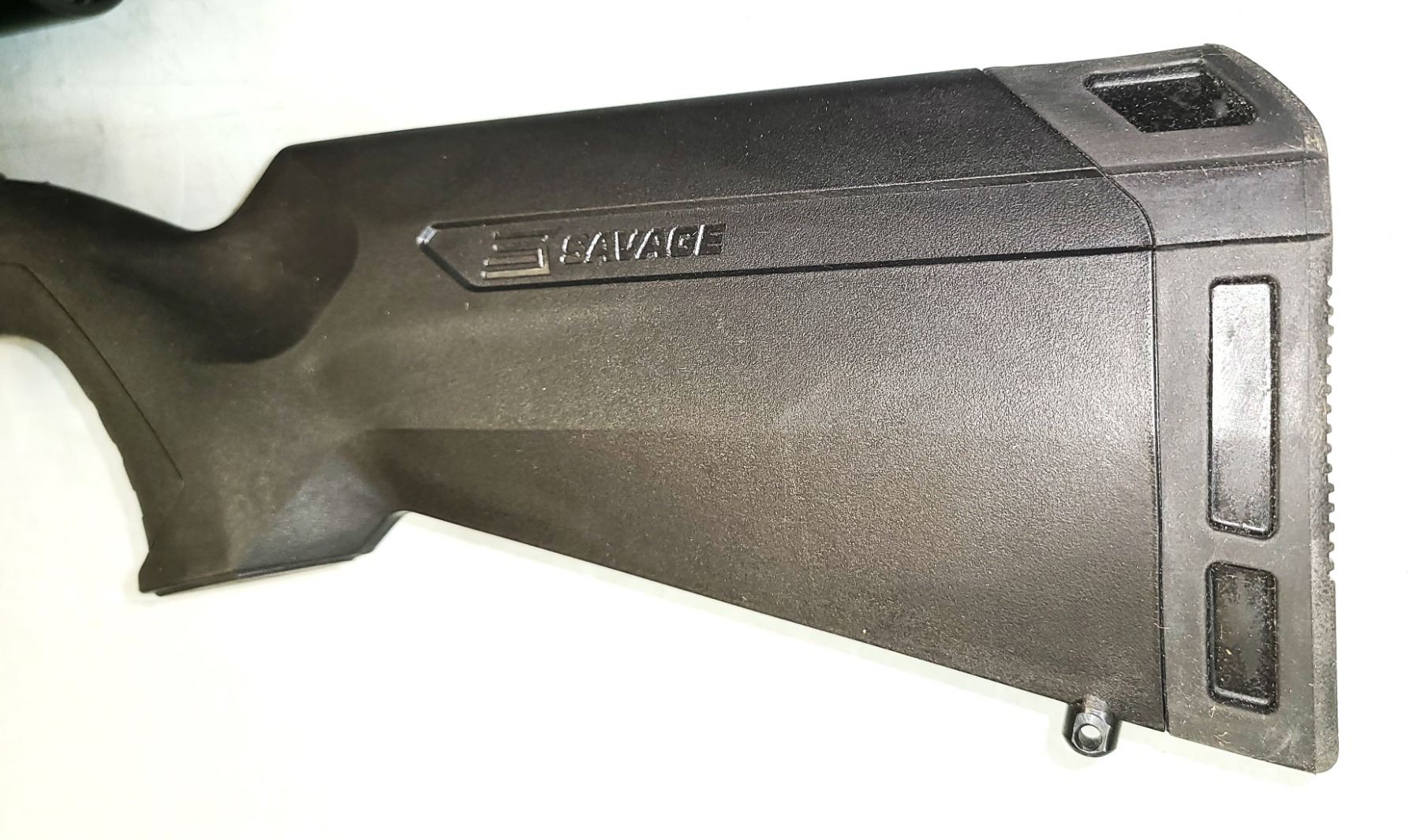 One piece polymyr stock, pistol grip, standard Savage rubber butt pad, all as new plus
