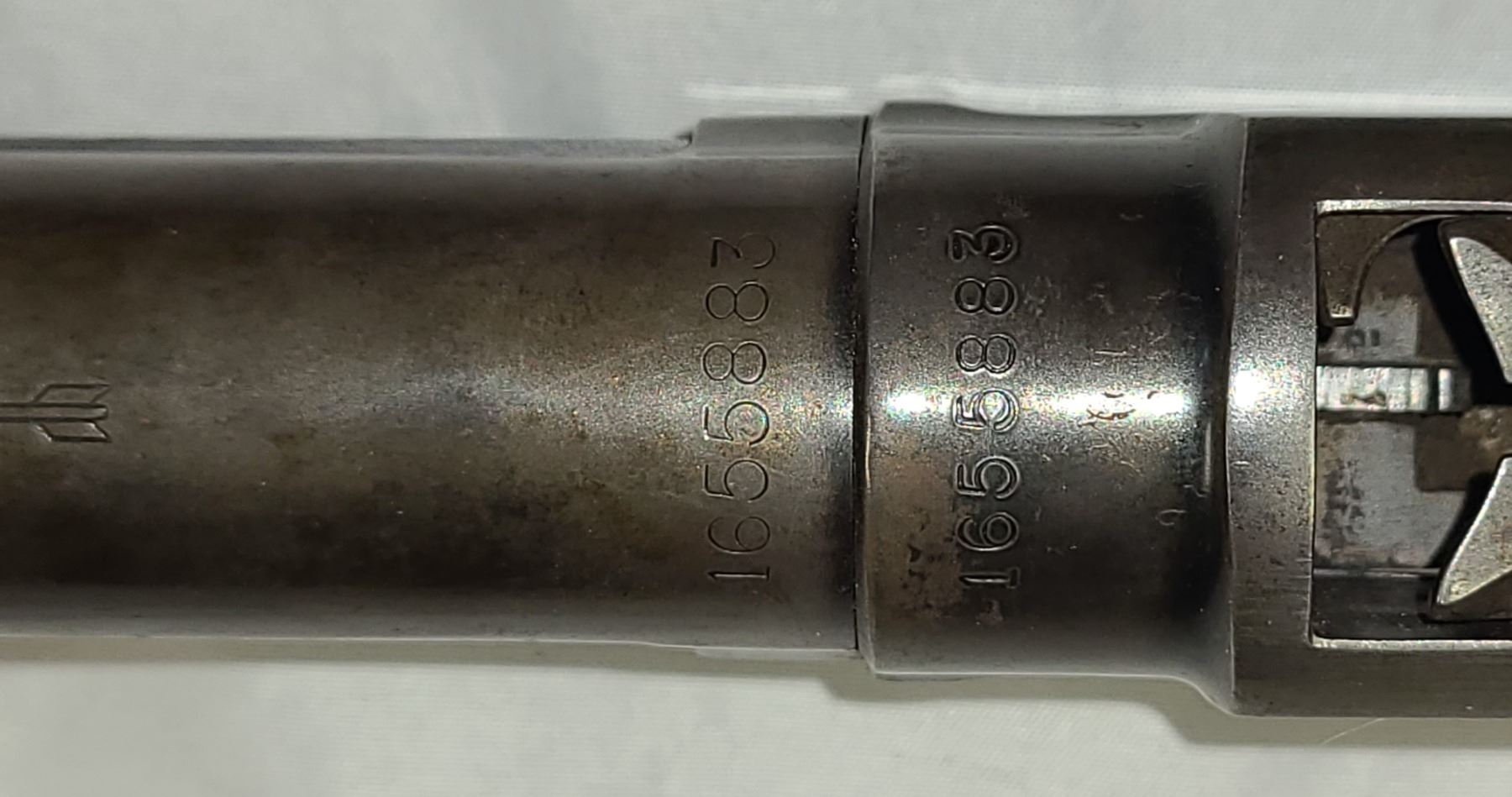 receiver and faded area 1/2 way along stock to butt plate from a rubber recoil pad