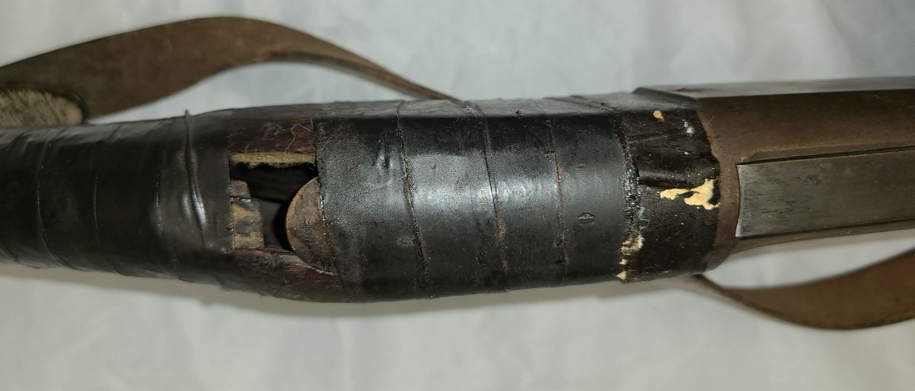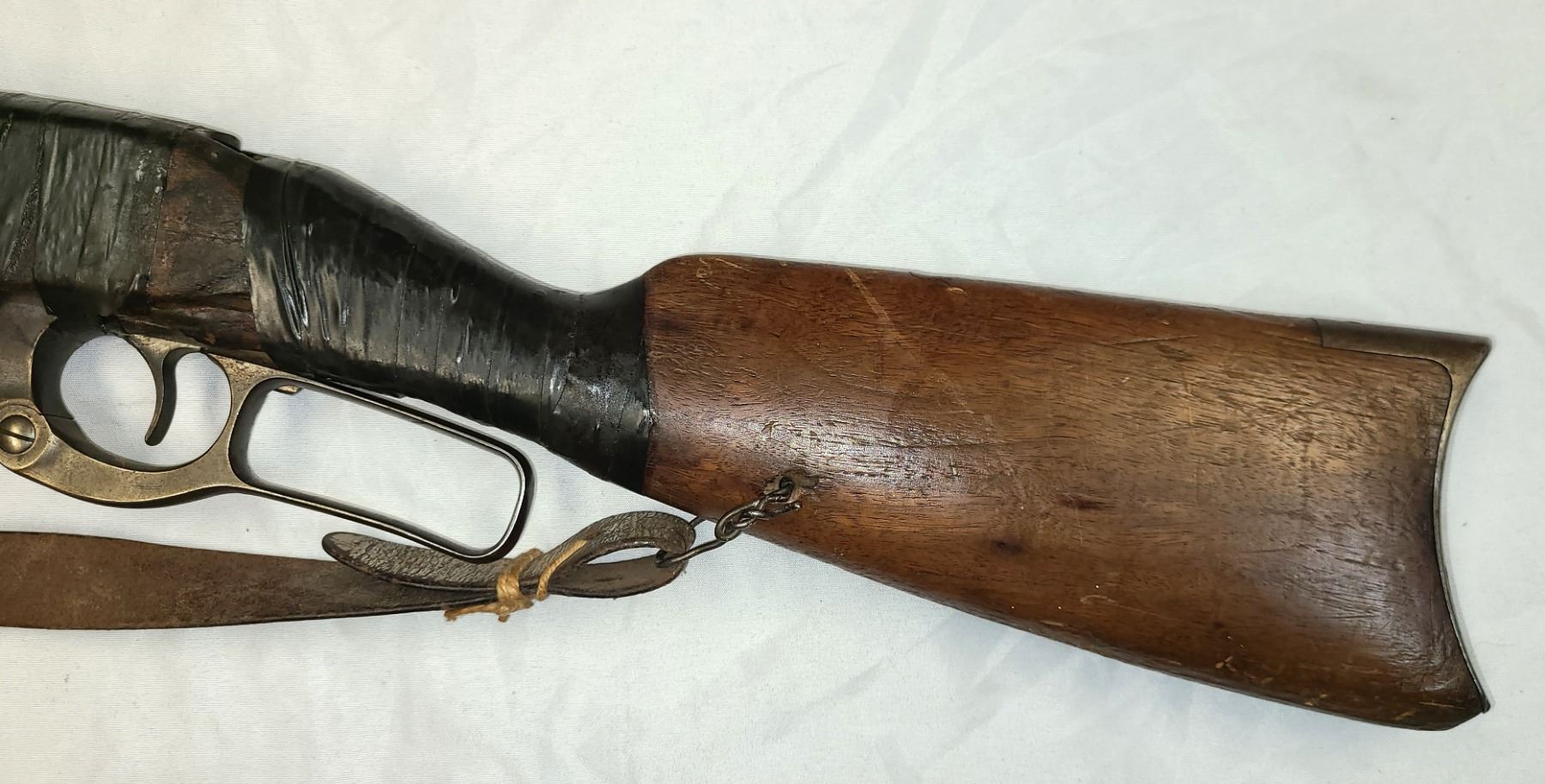This one has broken stock which is held together with electrical tape ! Has had holes drilled into it with fence