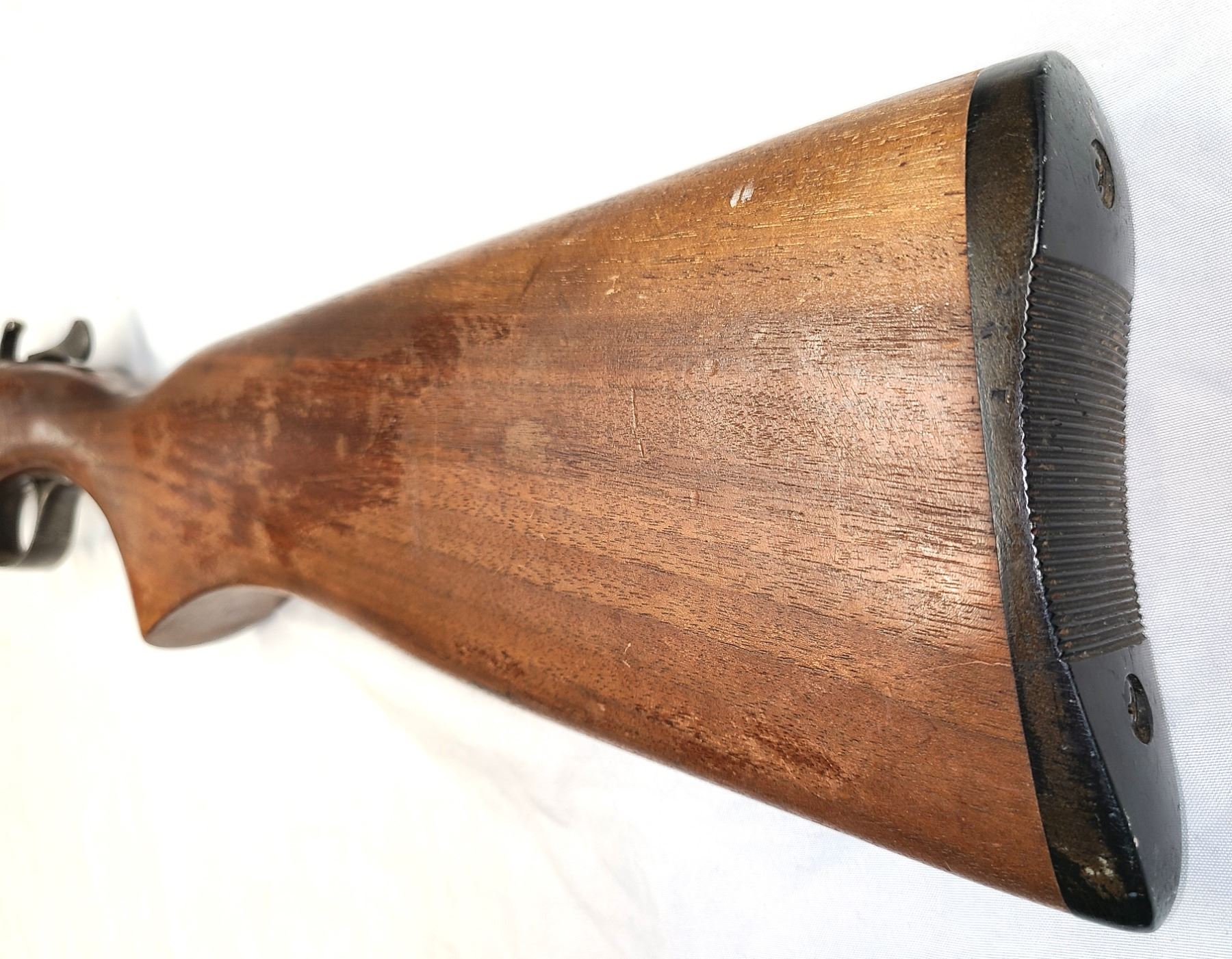Metal finish shows handling marks and wear. Stock shows some marks