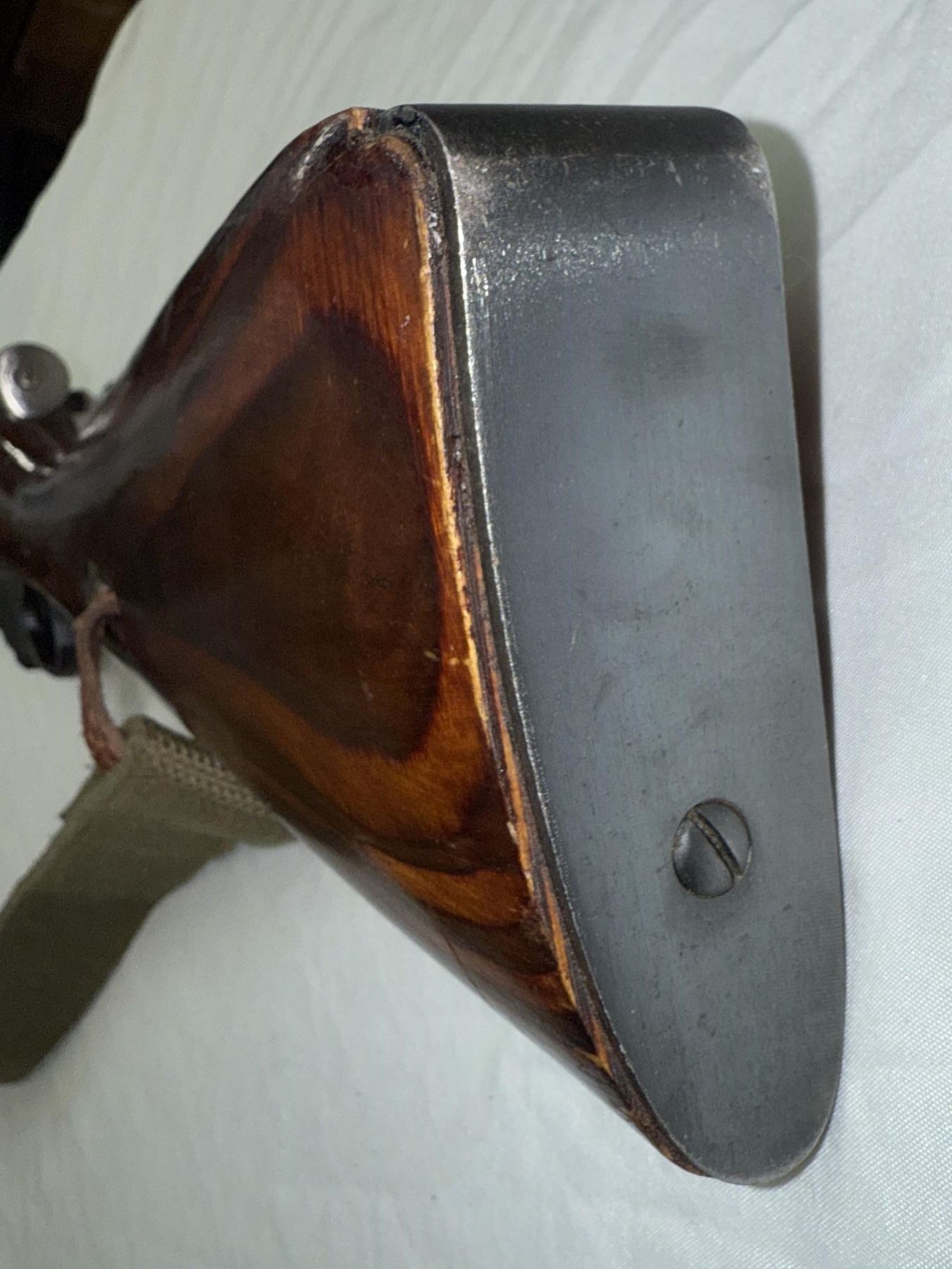 on the butt and a metal butt-plate. Has the standard canvas type sling.