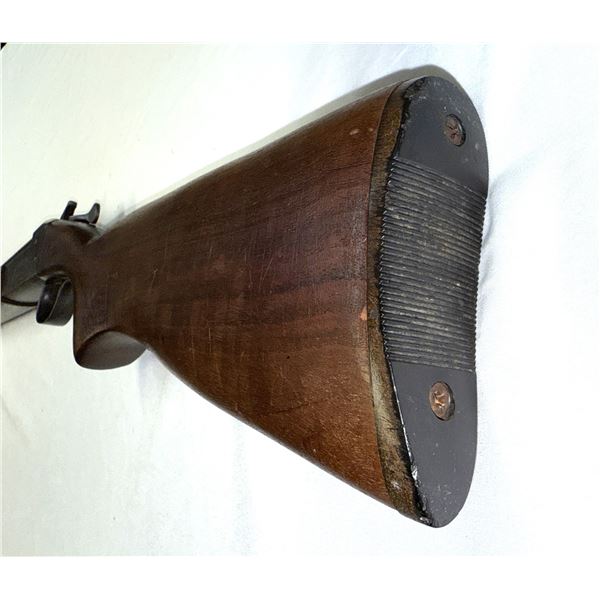 Rear wood stock has no cracks and appears to have original finish which is now worn.