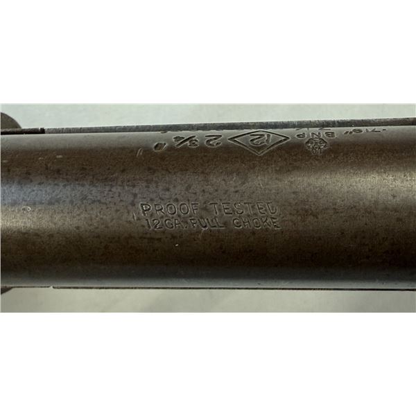 On top of barrel is stamped Proof Tested 12 ga Full Choke.