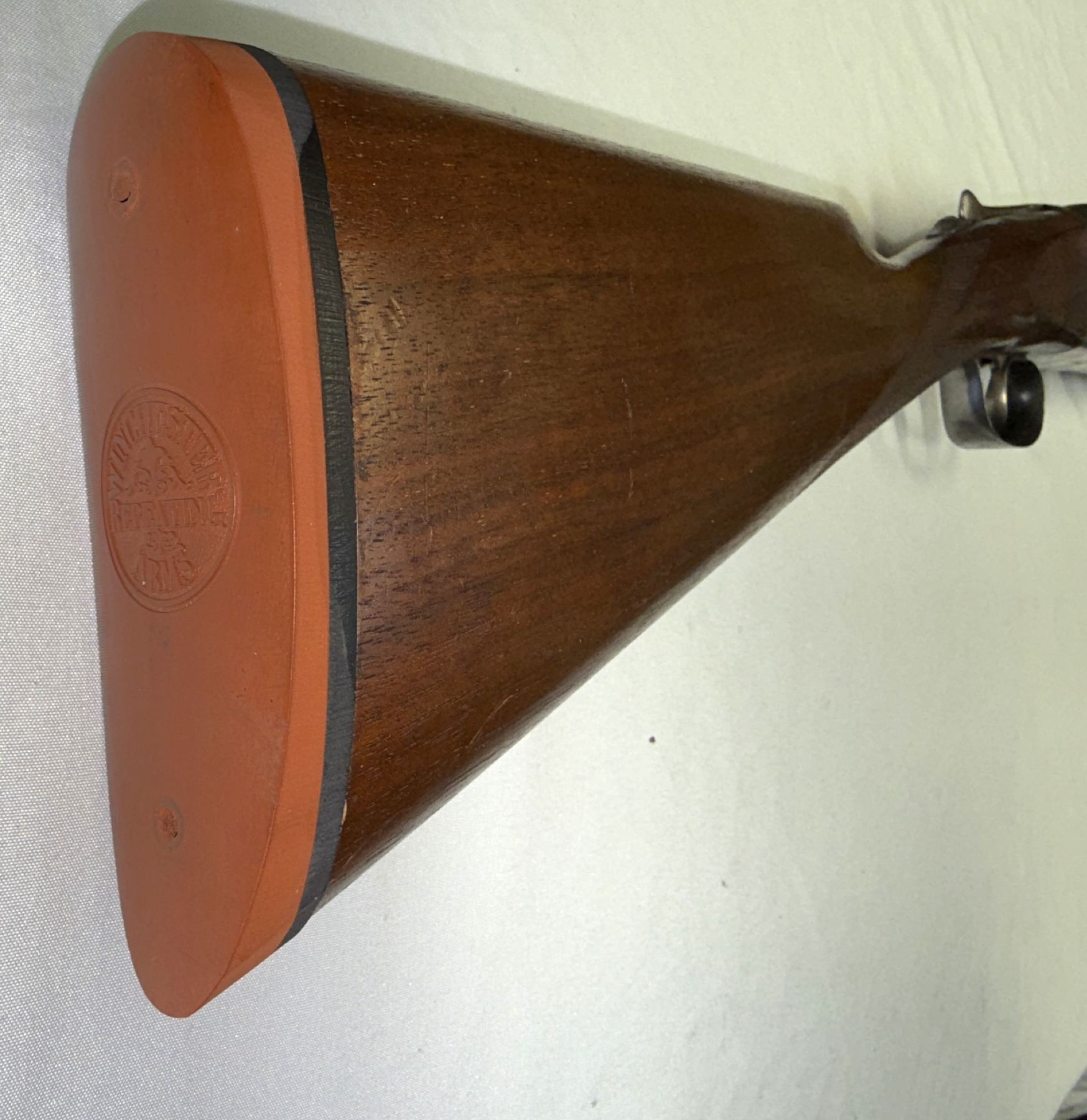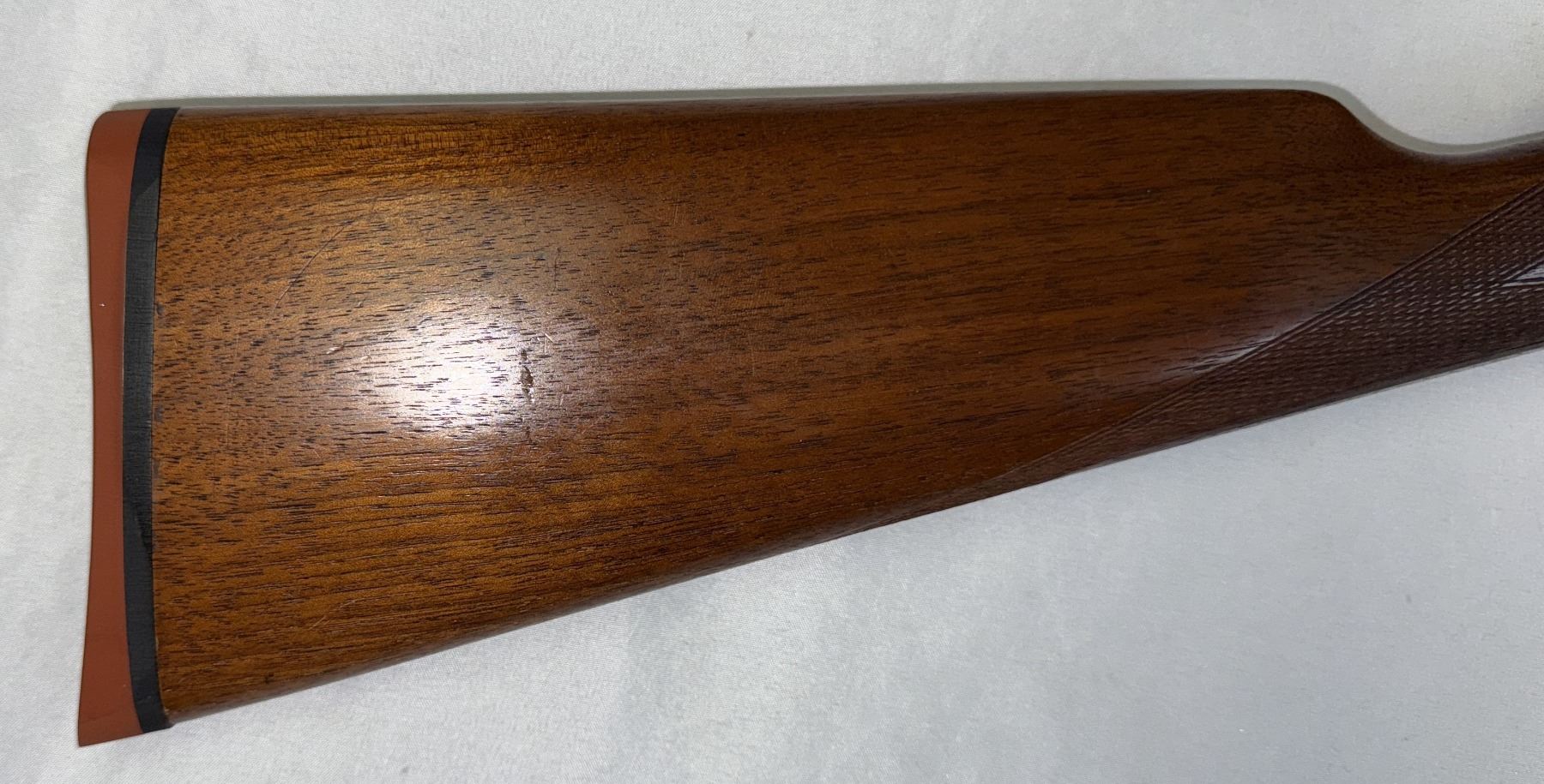 The straight English stock has a Winchester red rubber buttplate.
