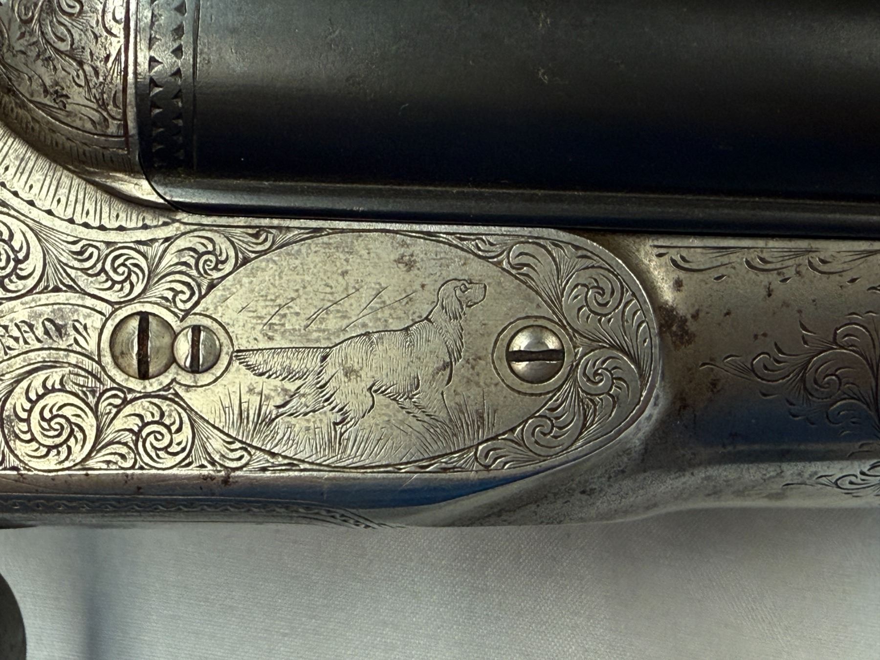 The gun has double triggers, D-grade engraving, which is still strong with very little wear.
