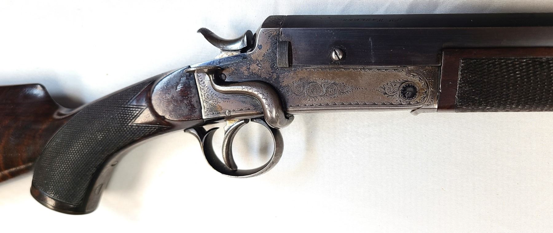 Receiver frame is finely engraved with scroll and pattern
