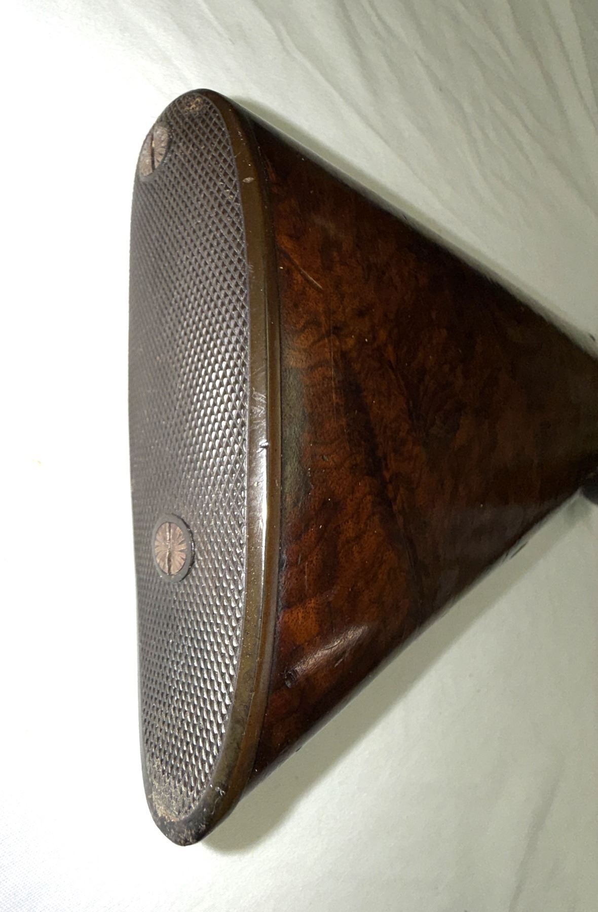 Splinter forearm, with point pattern checkering and a diamond escutcheon .