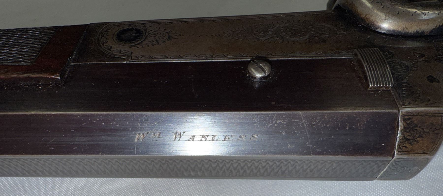 Makers name Wm Wanless is stamped on right side of barrel.