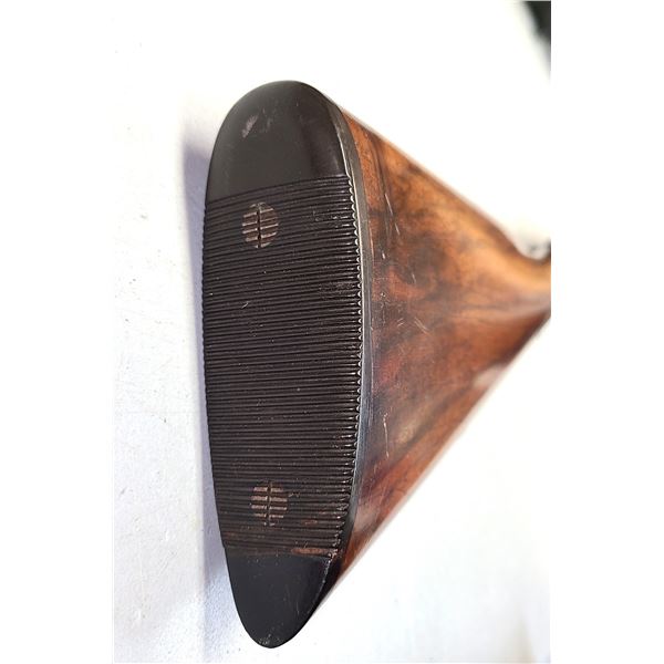 One piece nicely finished wood stock, pistol grip, hard rubber original butt plate