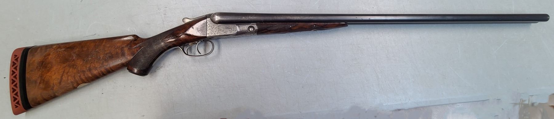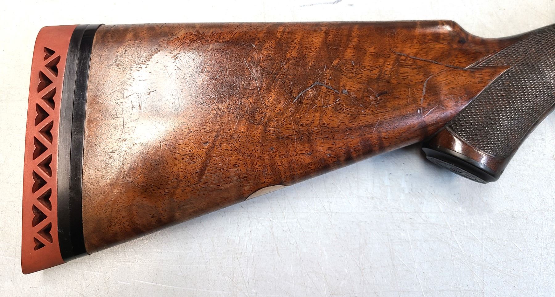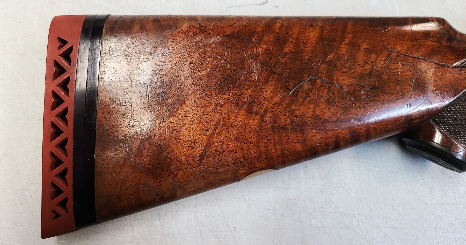 The straight English stock has an aftermarket Hawkins rubber butt pad.