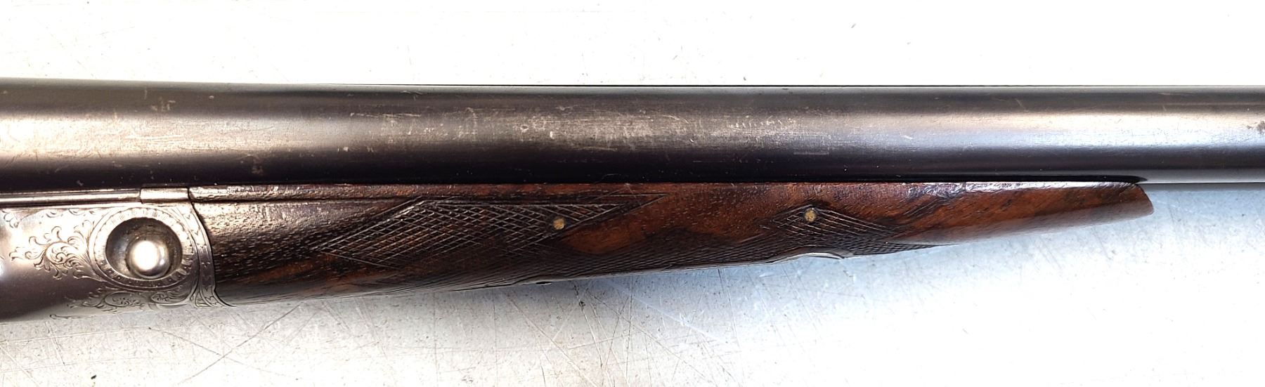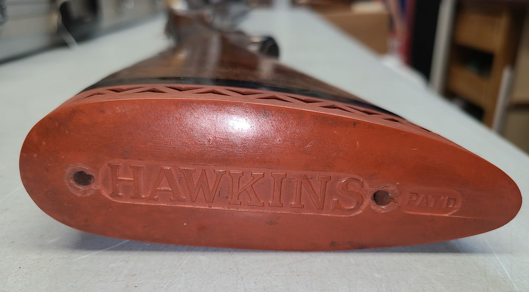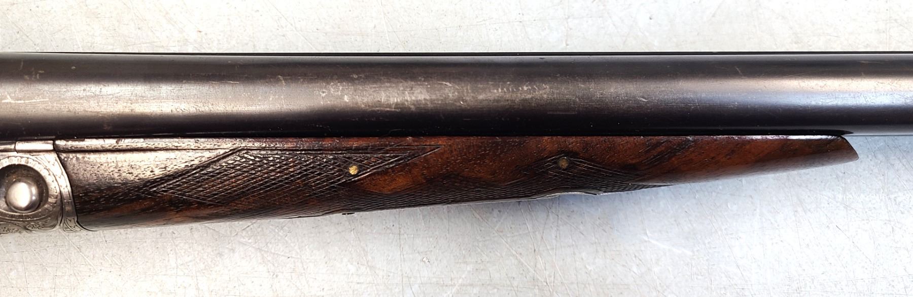 The straight English stock has an aftermarket Hawkins rubber butt pad.
