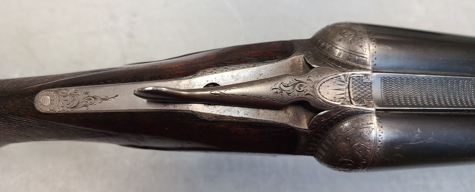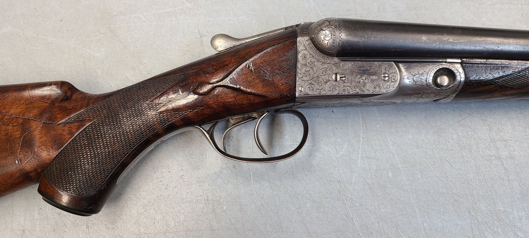 The gun has double triggers, D-grade engraving, which is still strong with very little wear.