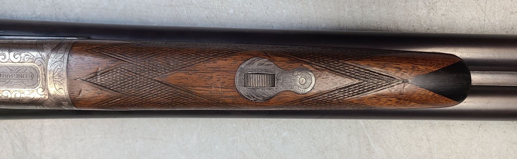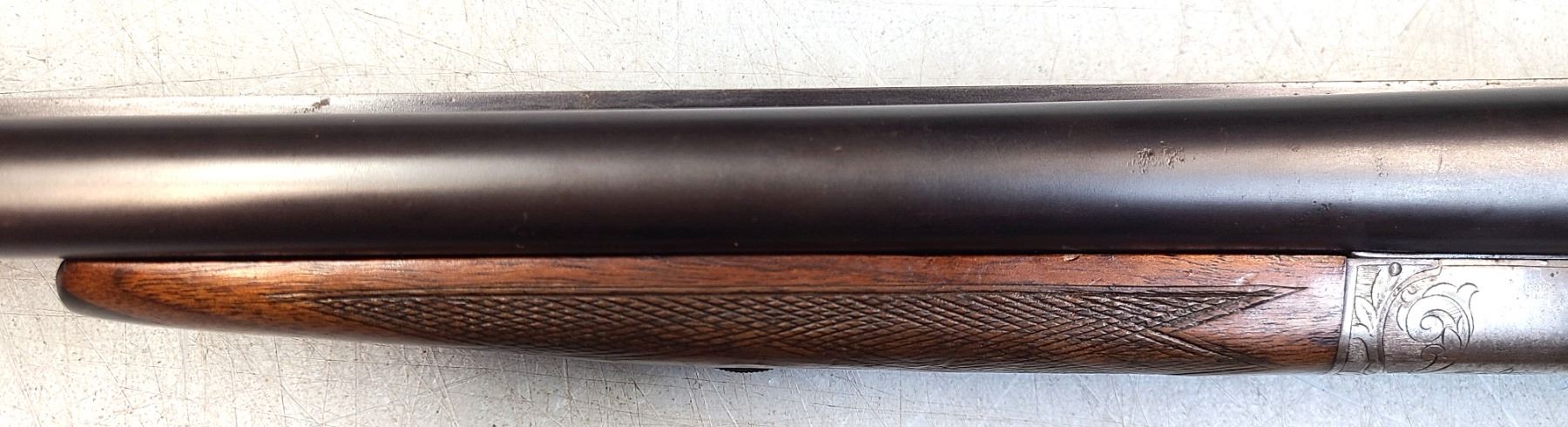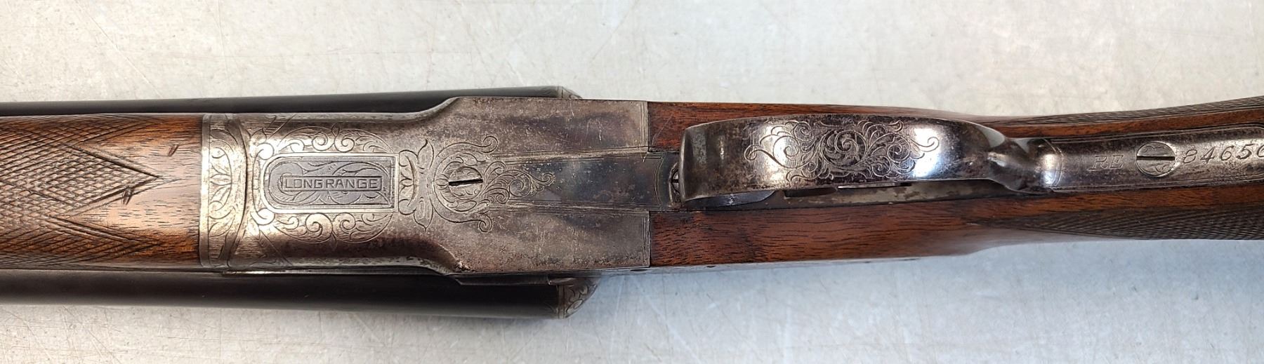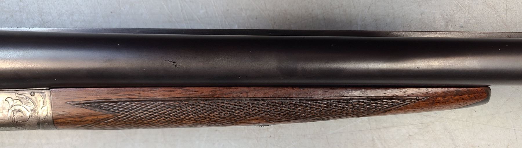Beaver tail fore end, beautifully figured original wood, 100% engraving, 95% barrel