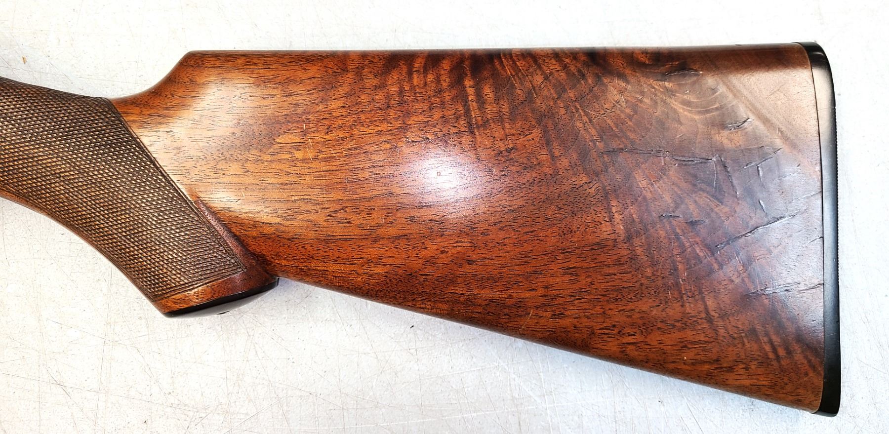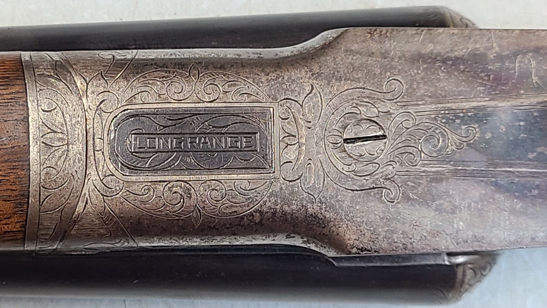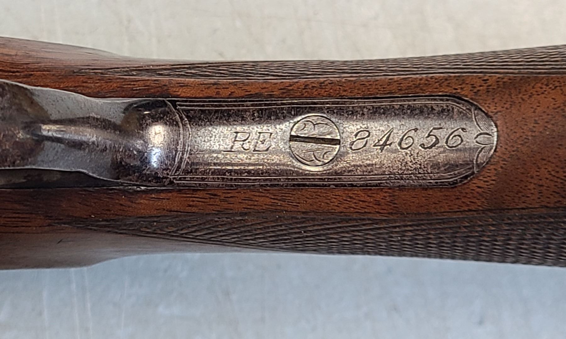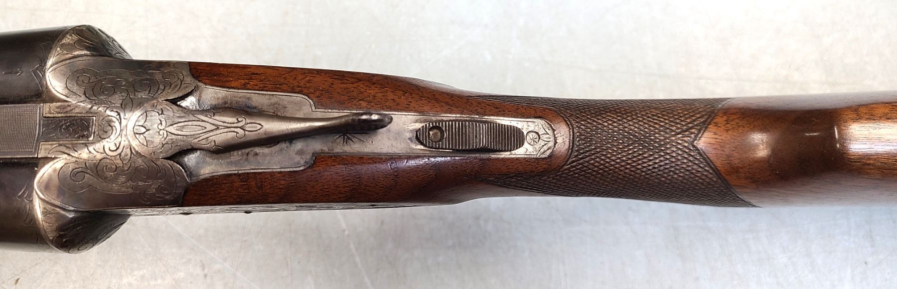 Beaver tail fore end, beautifully figured original wood, 100% engraving, 95% barrel