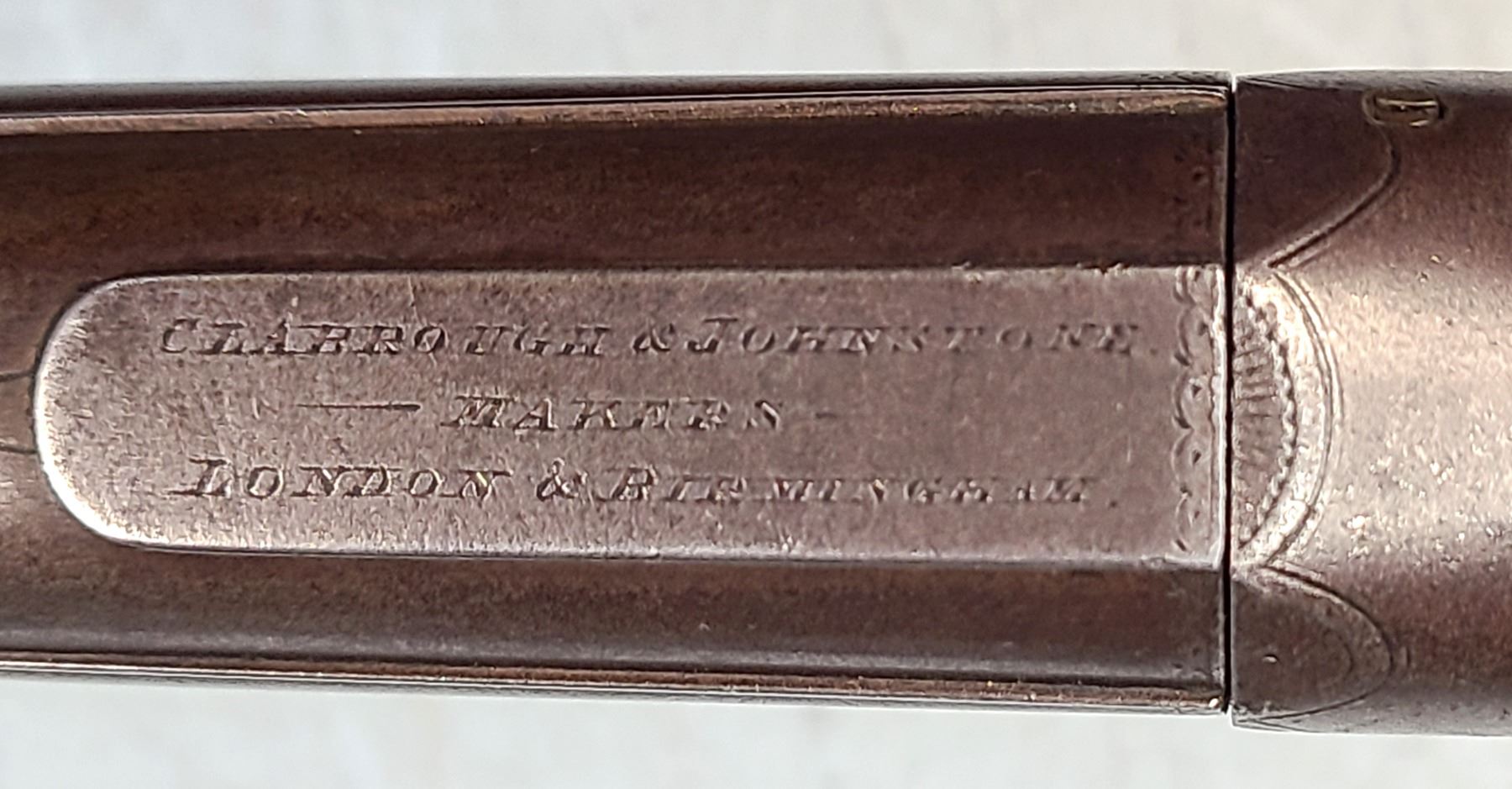 Ontop of barrel is stamped Clabrough & Johnstone Makers London & Birmingham