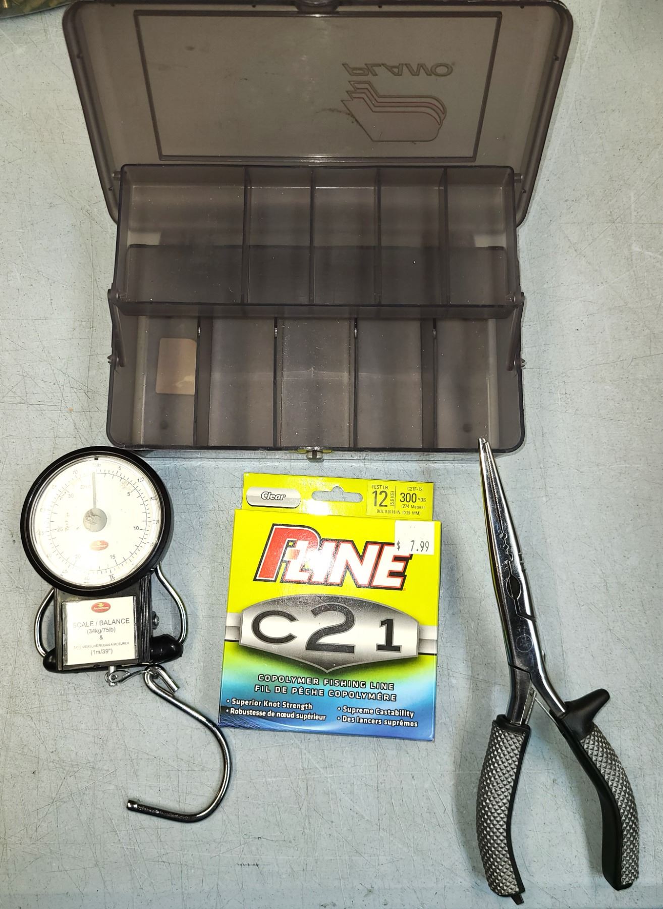 Mixed Fishing Lot as Shown - Box Line Pliers & Scale