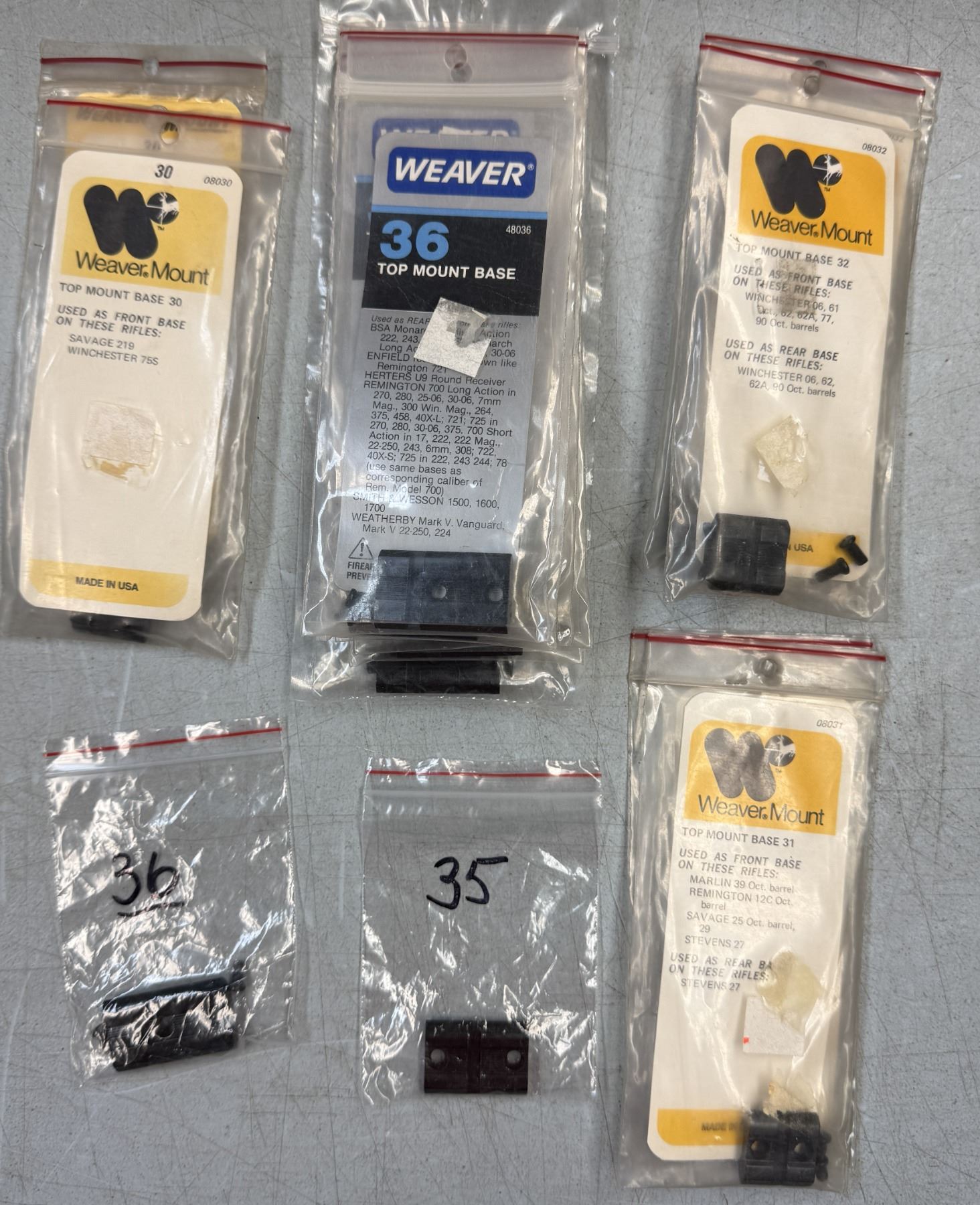 Weaver No 30, 31, 32, 35 & 36 Scope Bases as Shown - 14 pc - NEW