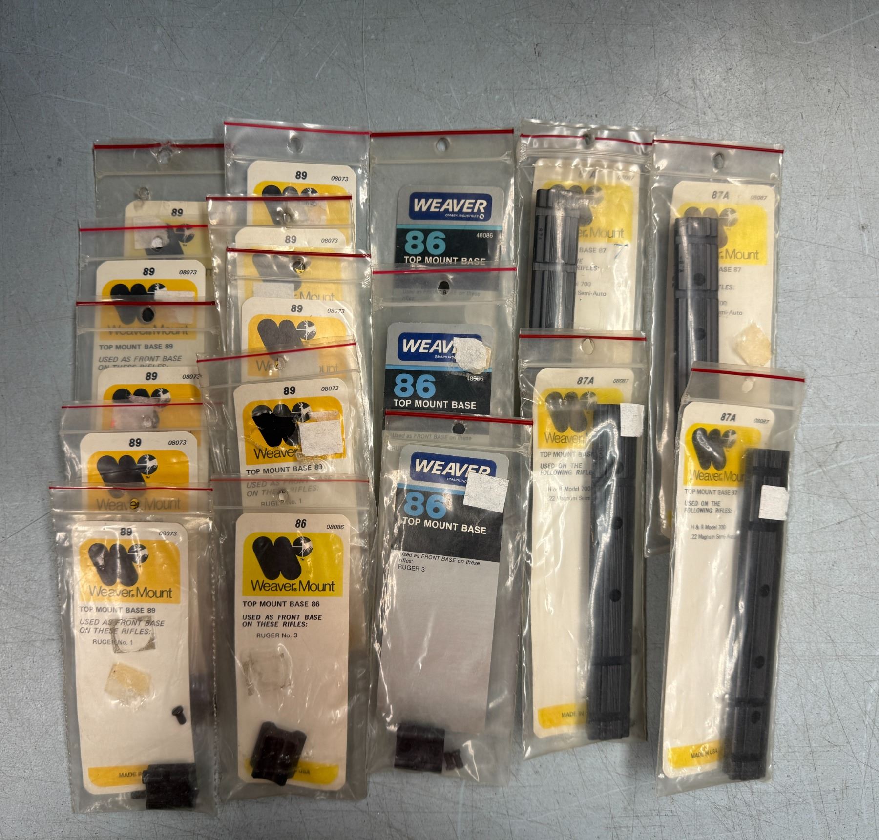 Weaver No 86, 87A & 89 Scope Bases as Shown - 17 pc - NEW
