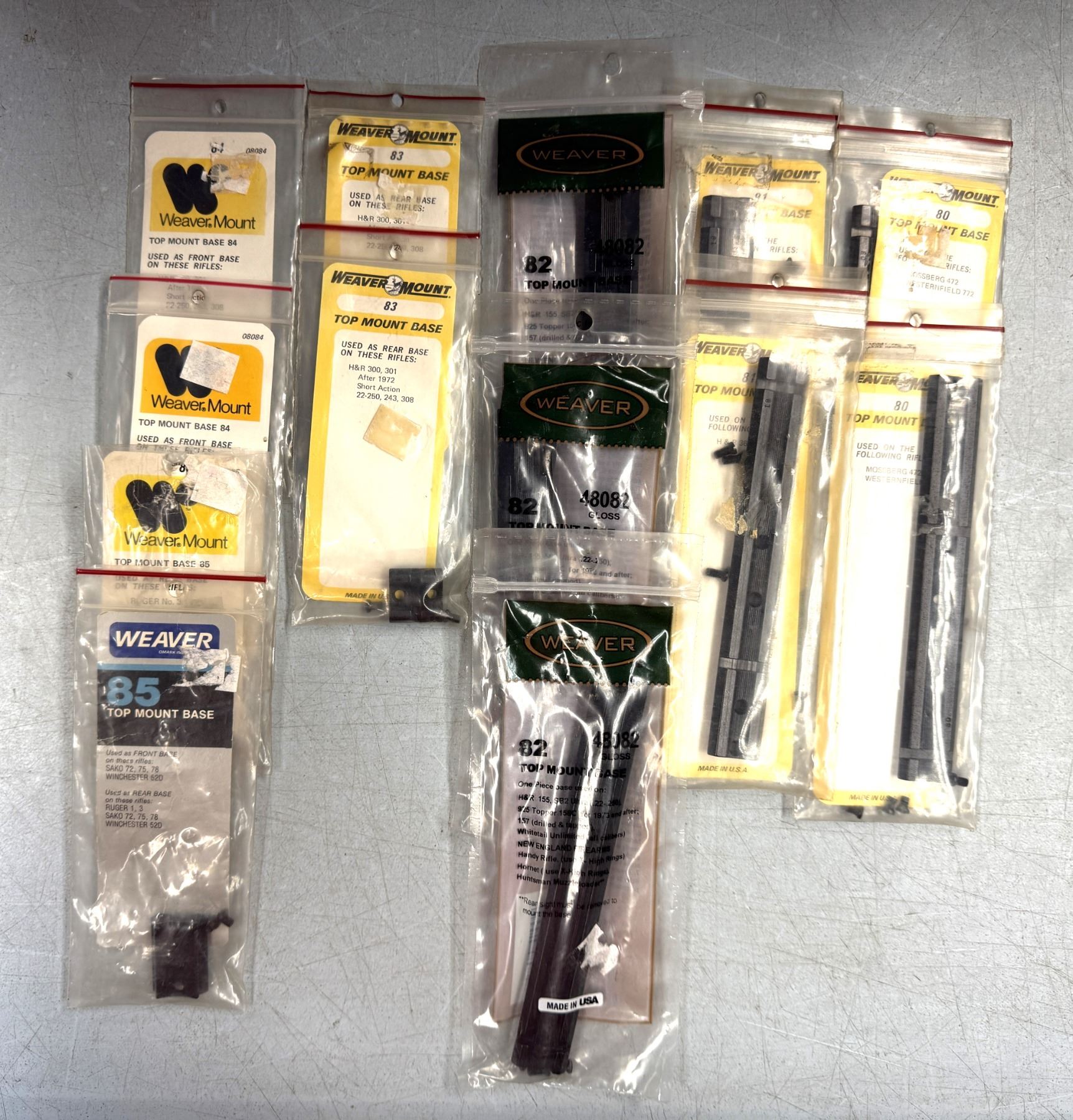 Weaver No 80 to 85 Scope Bases as Shown - 13 pc - NEW