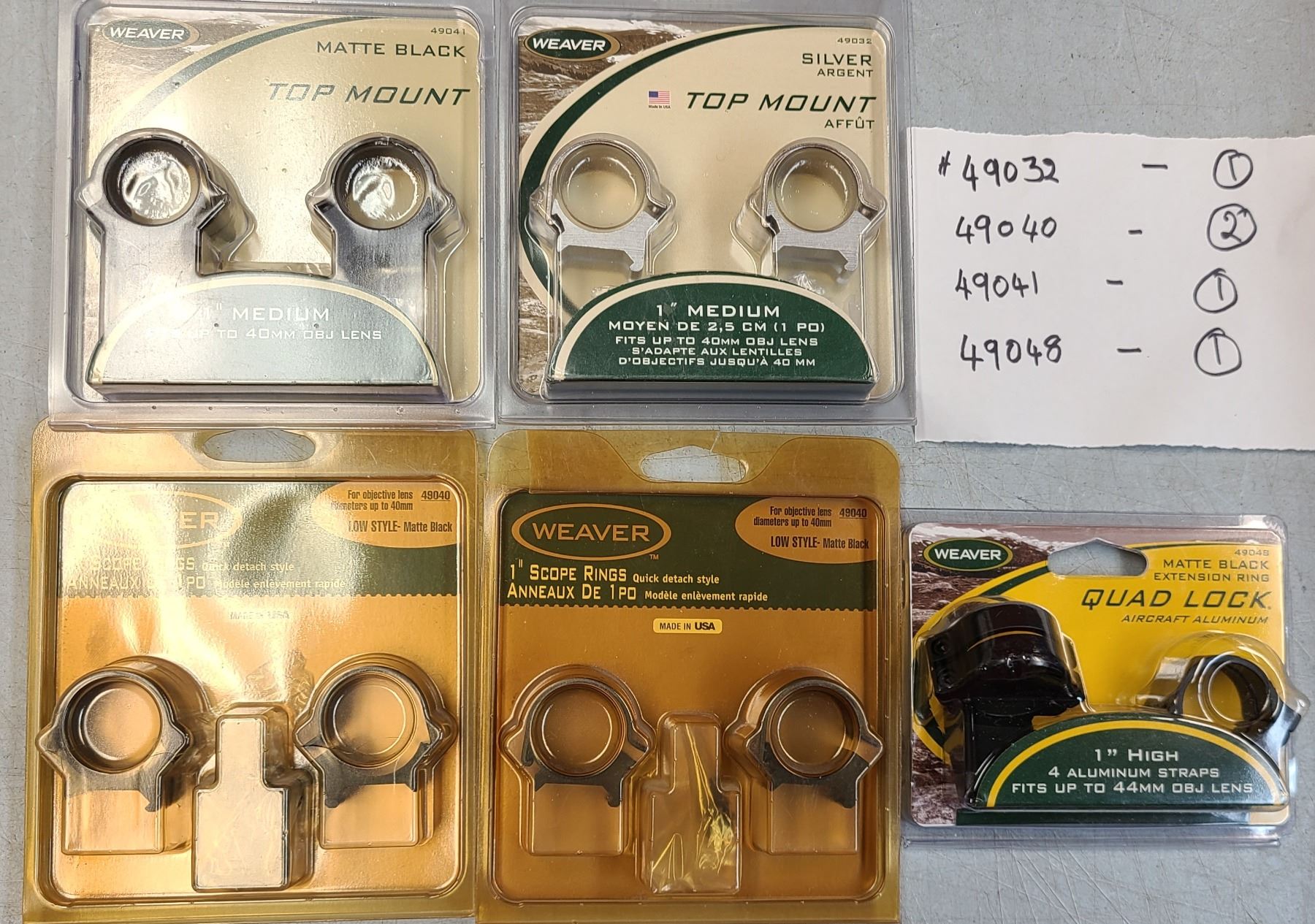 Lot 345 Weaver Scope Rings 1 inch - 5 pc Lot - NEW
