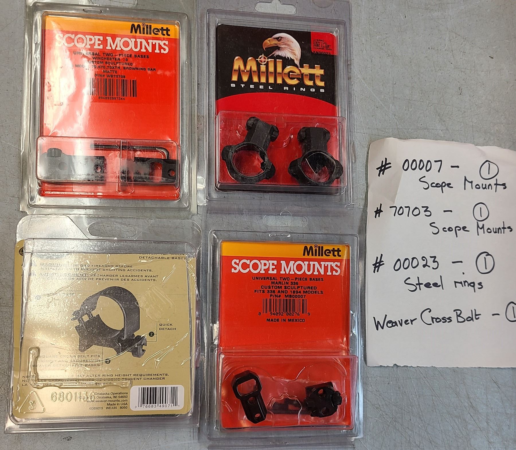 Lot 350 Millett Turn-In Scope Rings 1 inch & Bases as shown - 4 pc Lot - NEW