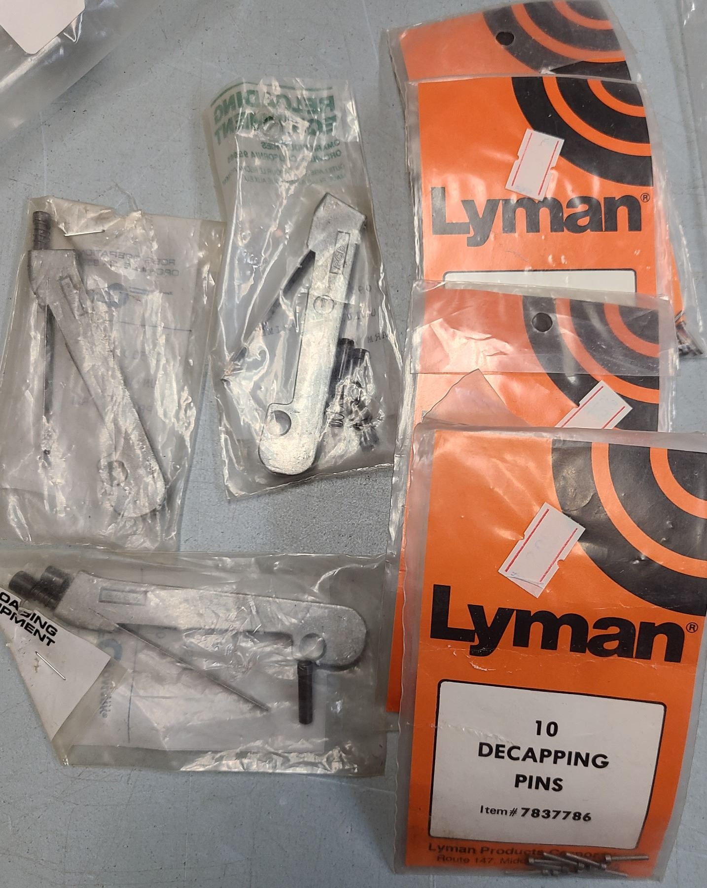 Lot 371 Lyman Decapping Pins x 40 + RCBS Universal Primer Arm Assembly x 3 - NEW