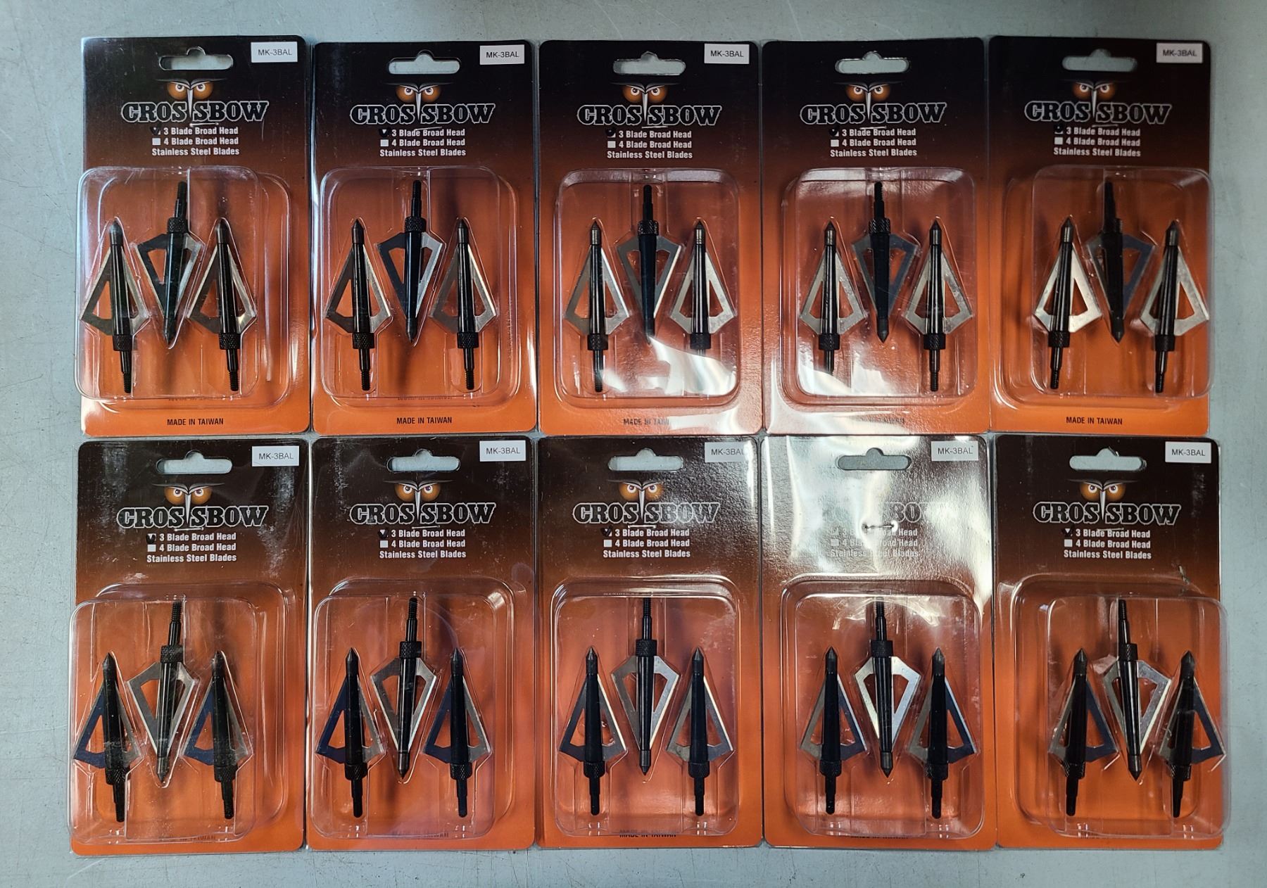 Lot 385 Crossbow Broadhead 3 Blade Arrow Heads 10 x 3 pack - NEW