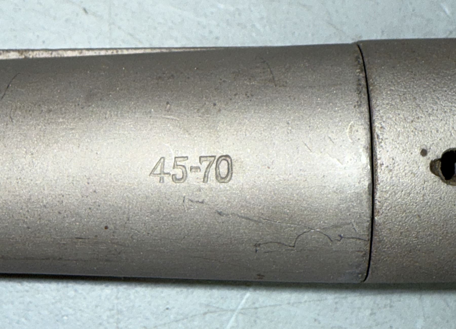 REINFORCED BREECH on left side of receiver and 45-70 on barrel.
