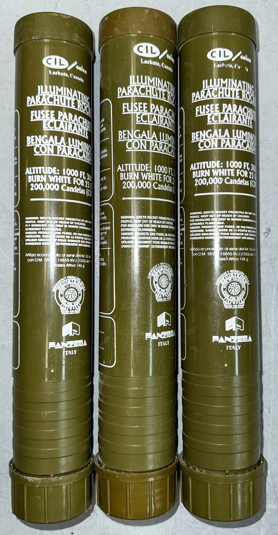 Lot 679 Rocket Parachute Flares CIL Orion x 3 - Burn White Expired 2008