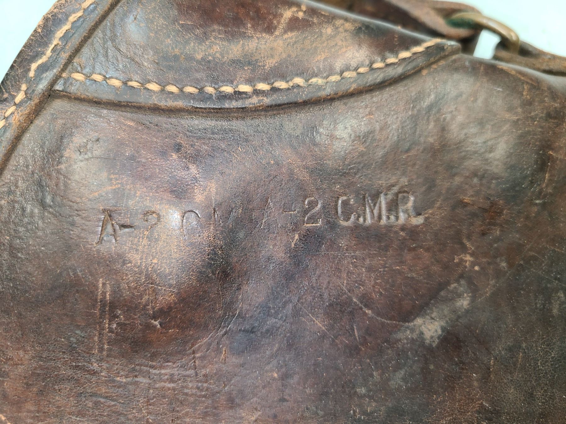 Also has someones name cut into leather .. Missing a couple of straps
