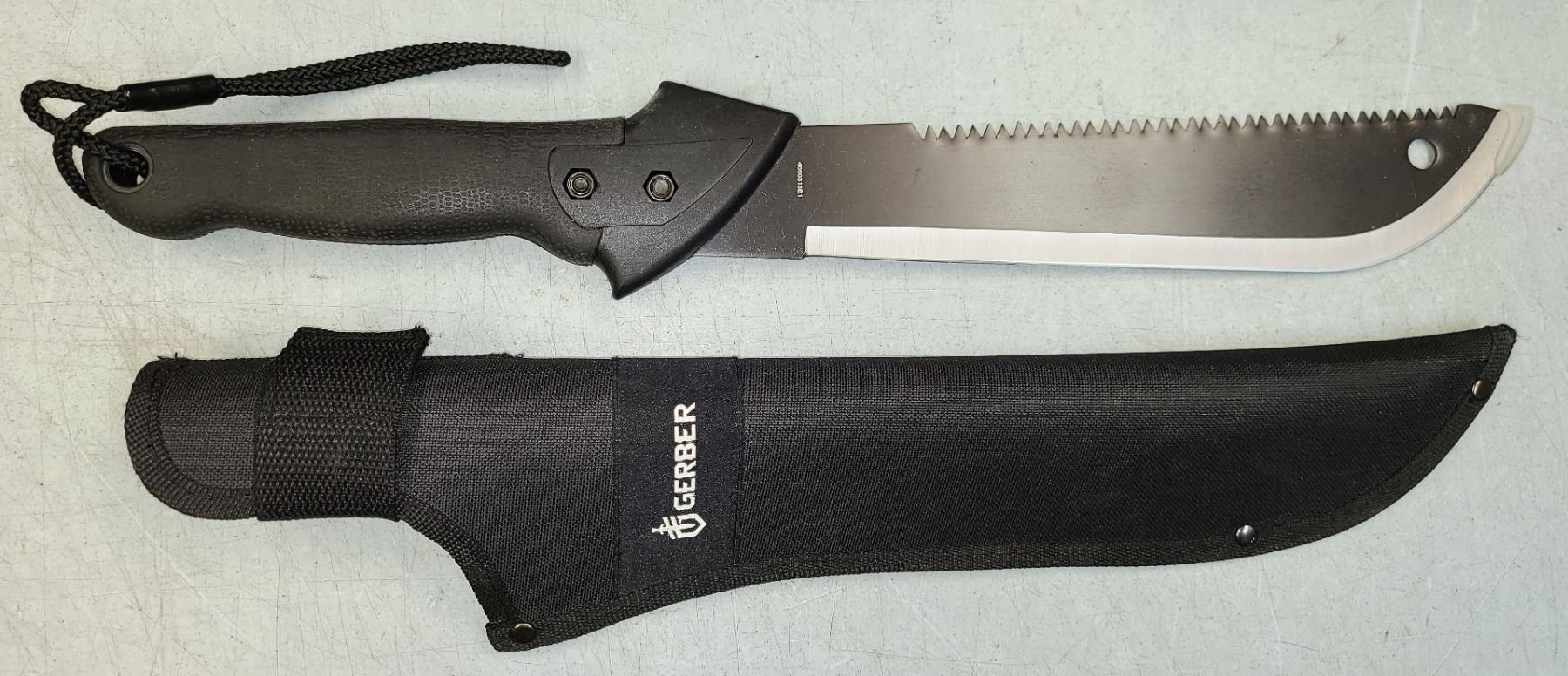 Lot 918 Gerber Machette Knife - Large 10 in Blade Sawback Style in Sheath