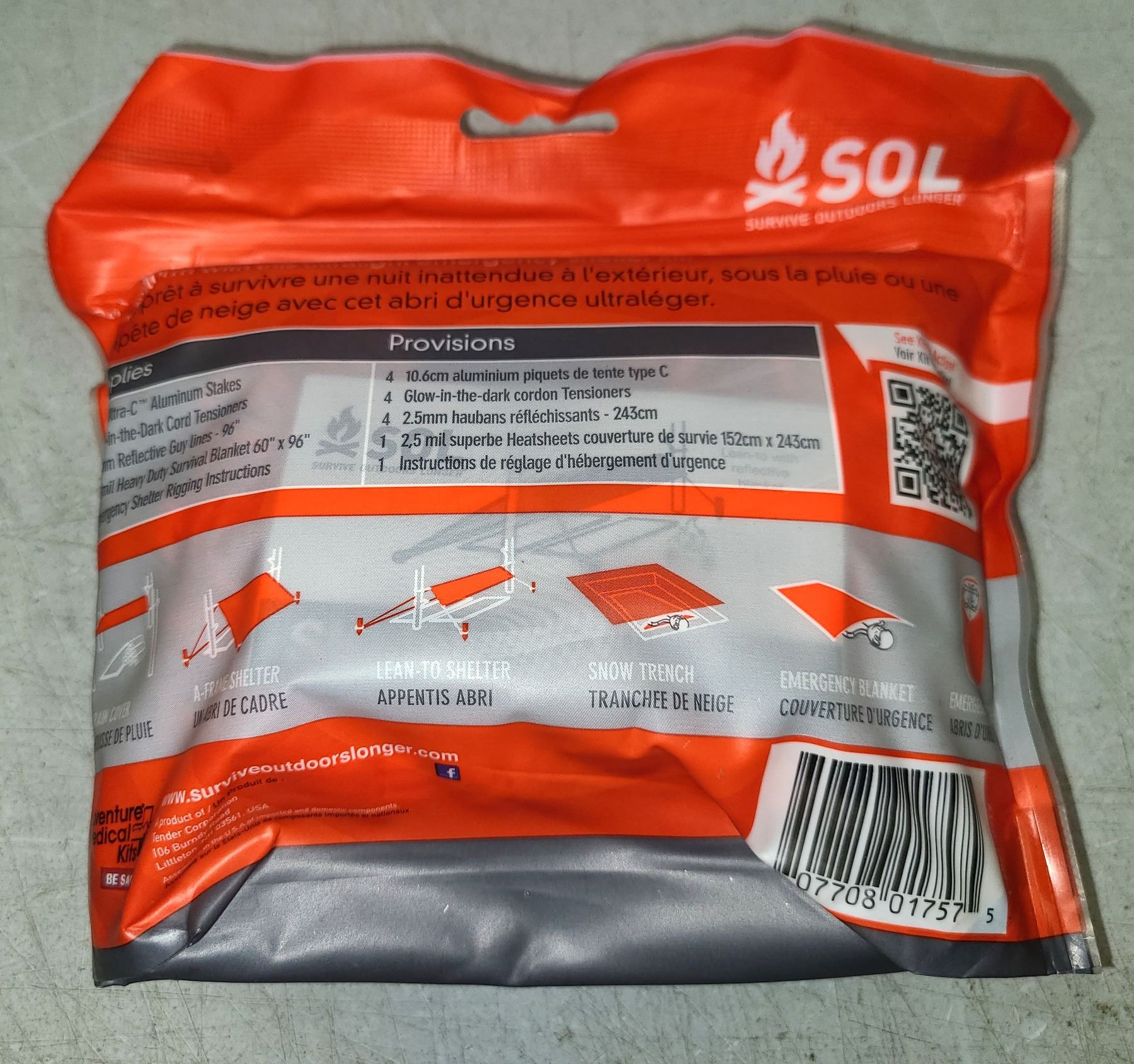 Lot 947 SOL Emergency Shelter Kit with Blanket - NEW