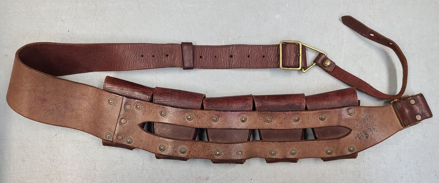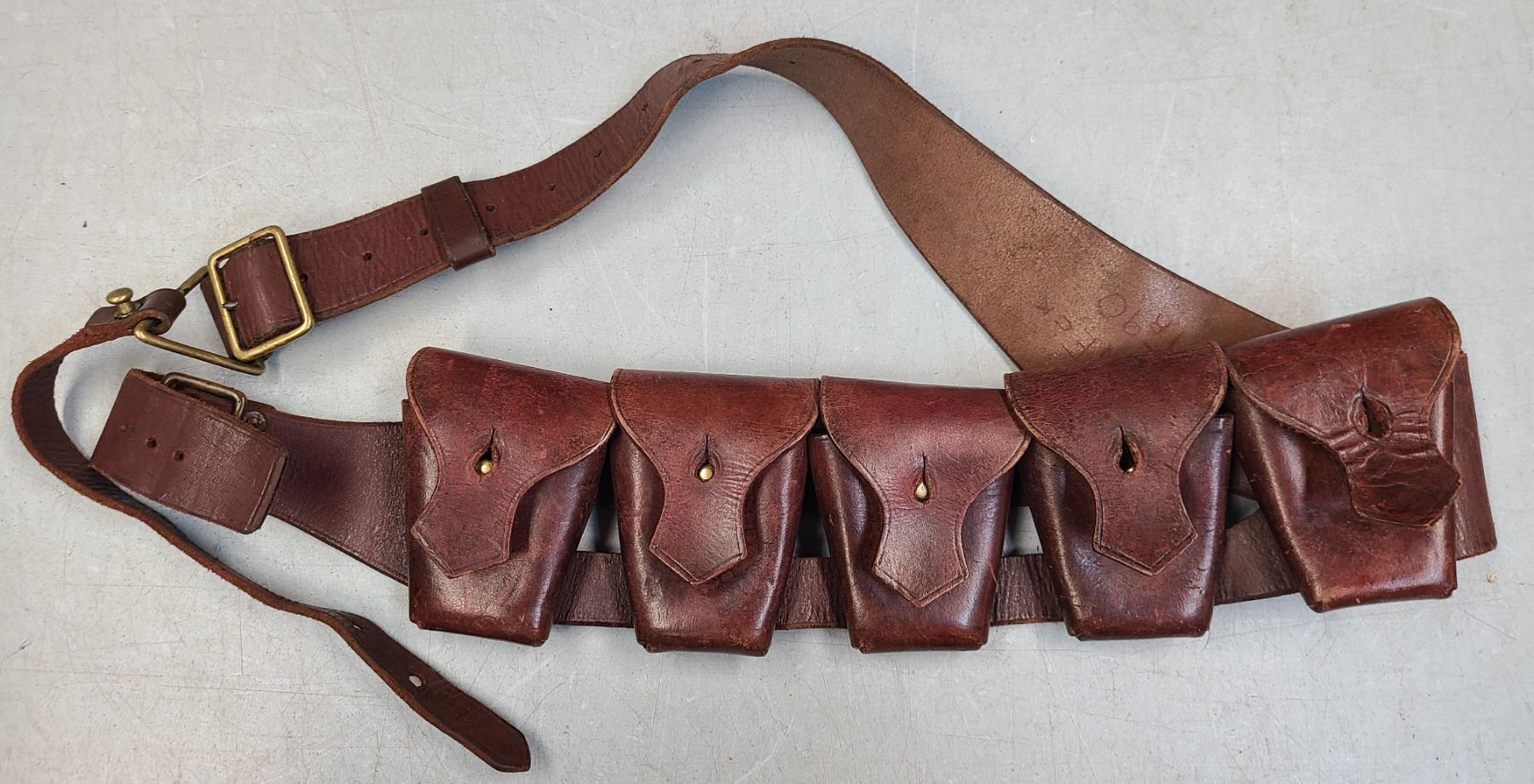 Original WWI era British Army 5 Pocket Leather 303 British Ammunition Bandolier