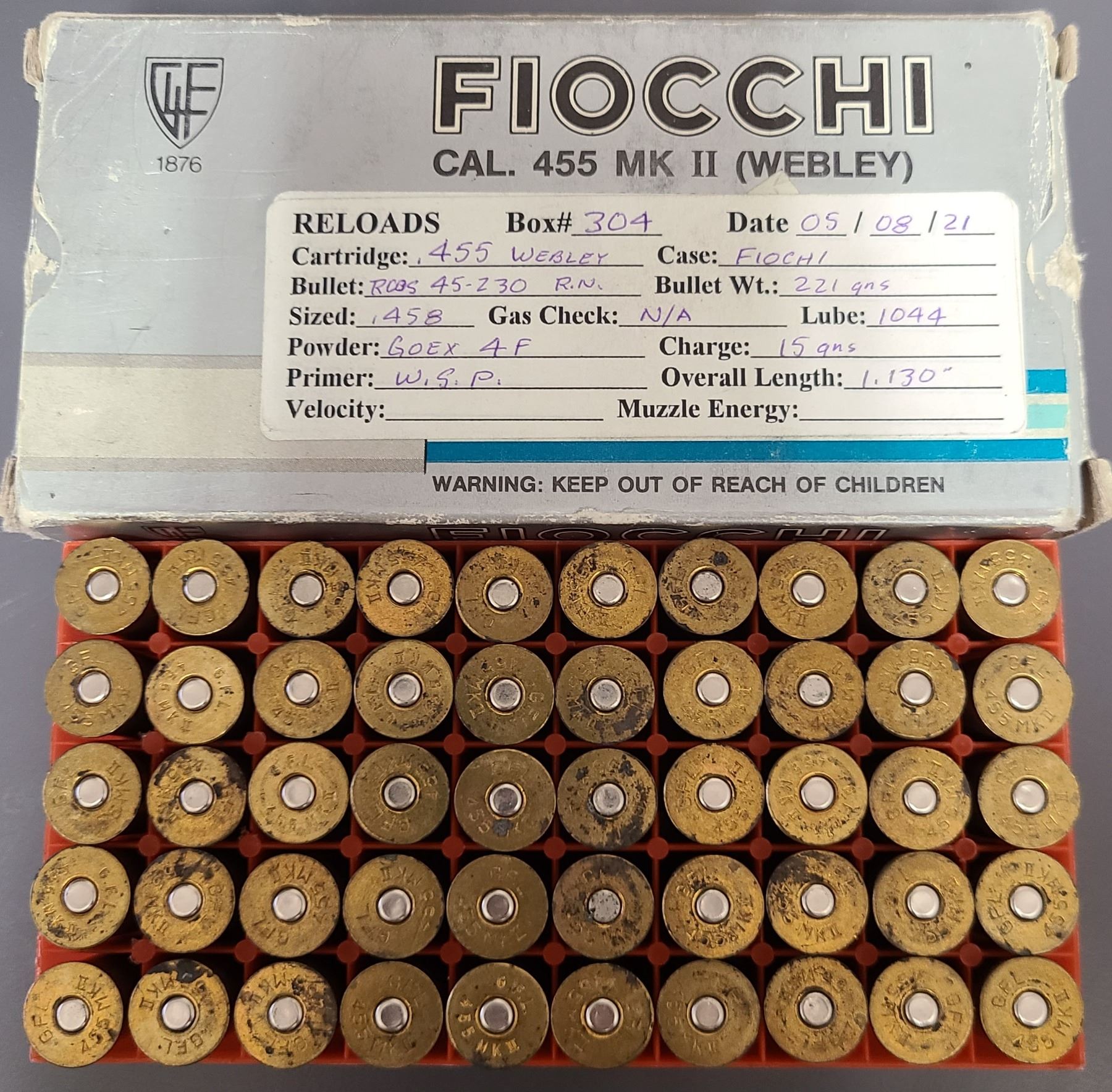 Lot 1126 455 Mk 11 Webley RELOAD Fiocchi 230 gr - 50 rds