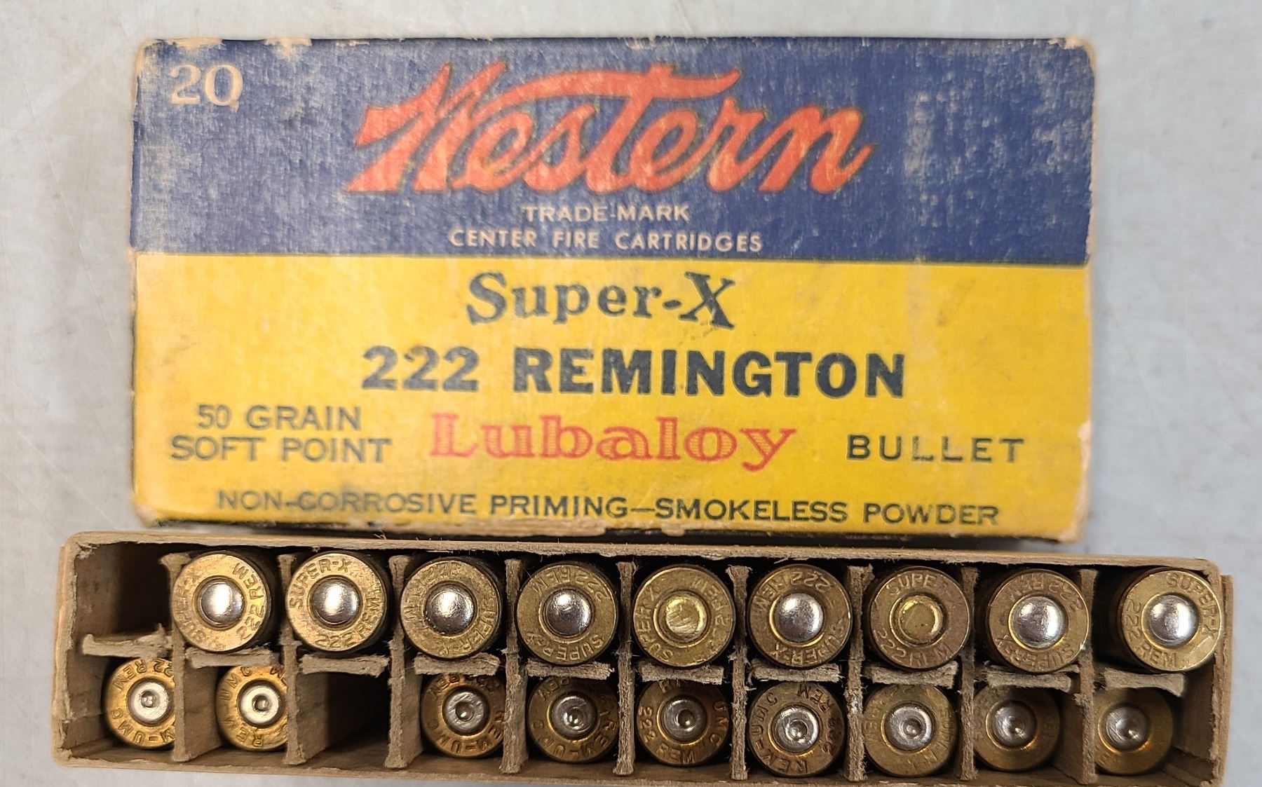Lot 1130 222 Remington Vintage Western 50 gr Soft Point - 9 rds + 9 Brass