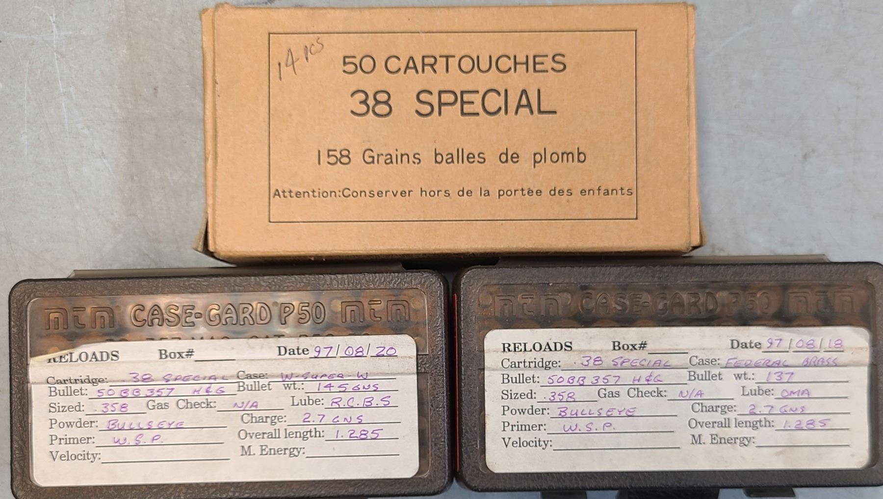 38 Special RELOAD 1376 gr x 50 145 gr x 50 - Total 114 rds