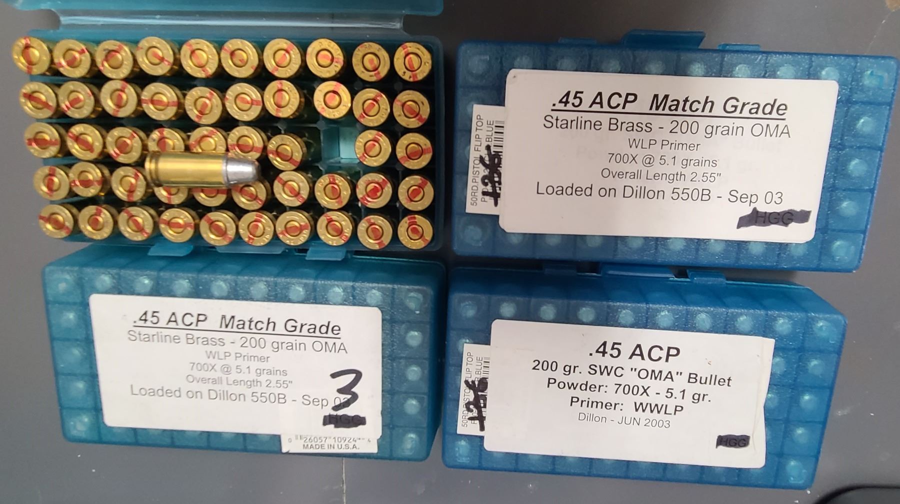 Lot 1173 45 ACP 200 gr OMA Flat Point - 200 rds RELOAD