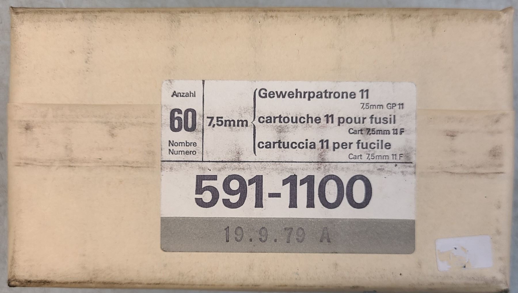 Lot 1291 7.5 x 55 Swiss GP11 Ammo Brick - 60 rds