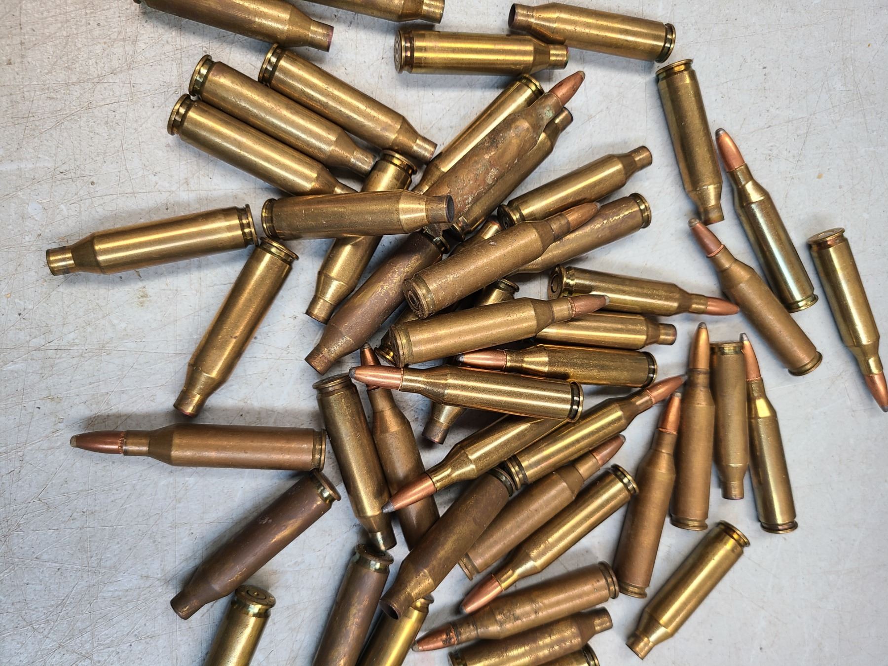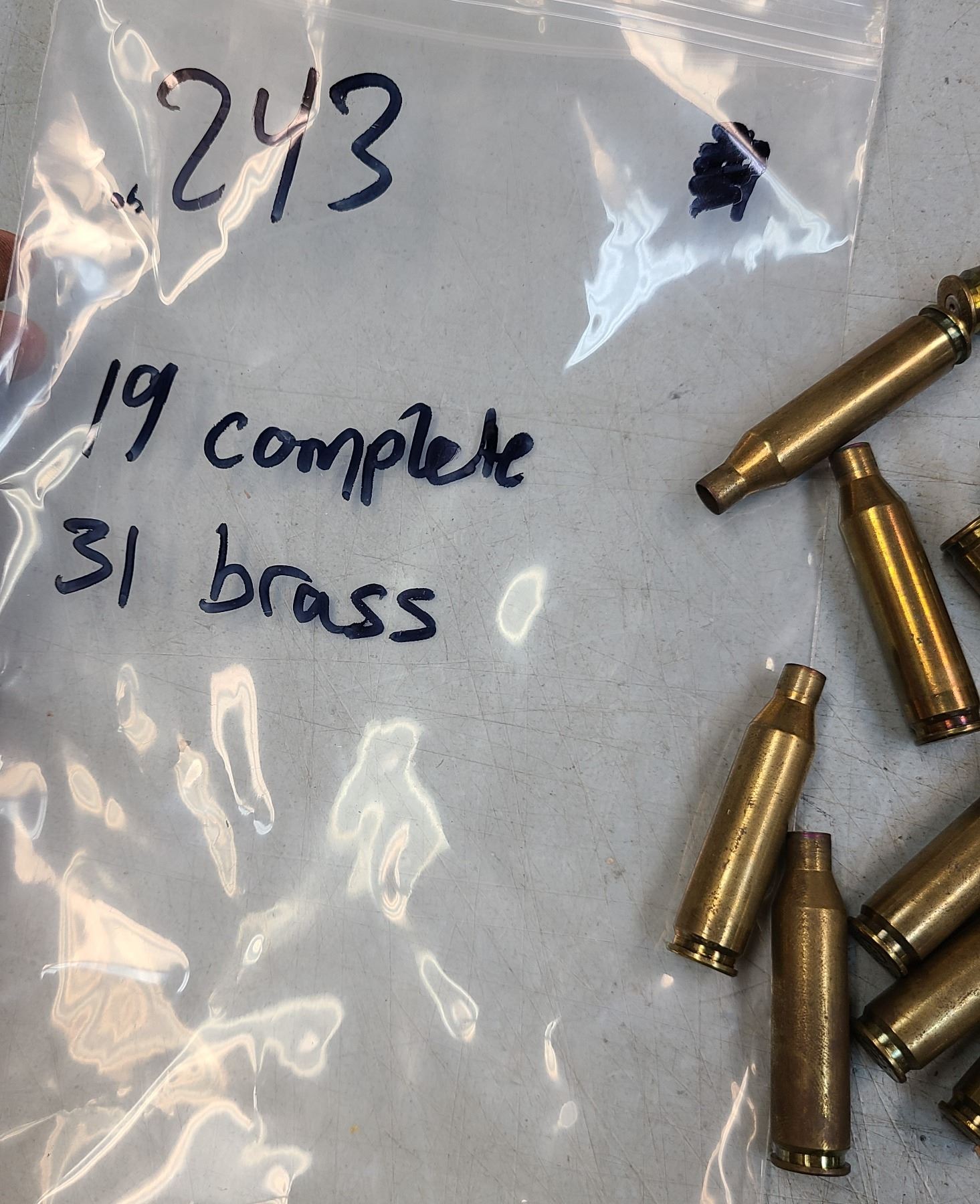 243 Win - Mixed Factory Ammo Lot - 19 rds + 31 Brass