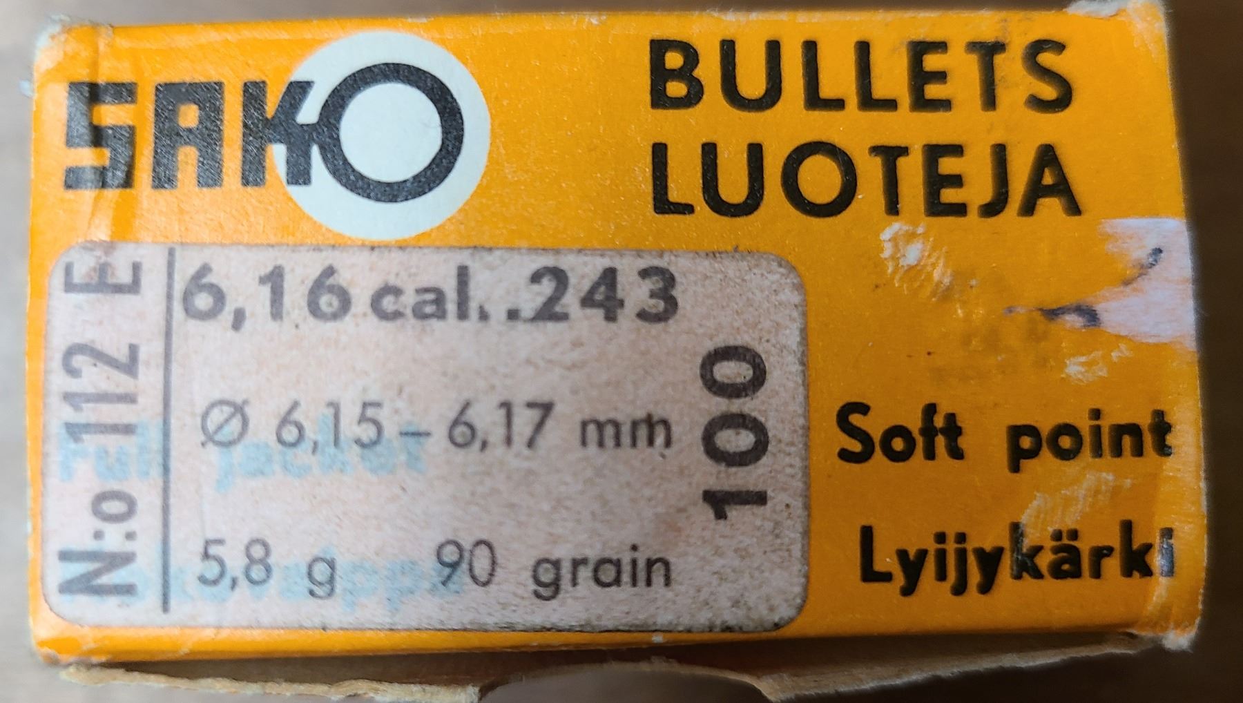 243 Win (6.16 cal) Sako 90 gr Bullets - 100 rds