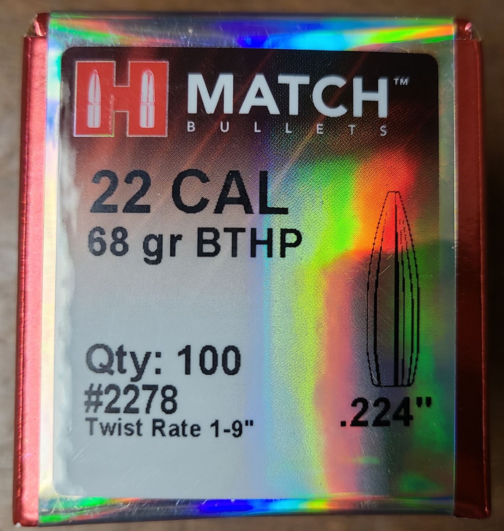 Lot 1342 Hornady Match 22 cal (.224) 68 gr BTHP - 100 rds
